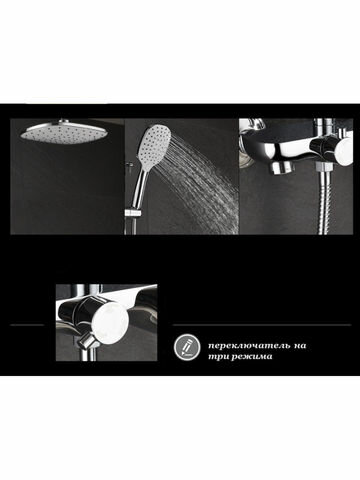 | Комплектация | смеситель - 1 шт. / эксцентрики - 2 шт. / декоративная шайба (отражатель) - 2 шт. / штанга - 1 шт. / крепление для штанги - 1 шт. / кронштейн для верхнего душа - 1 шт. / шланг душевой - 1 шт. / лейка душевая - 1 шт. / держатель душевой лейки - 1 шт. / паспорт - 1 шт. |