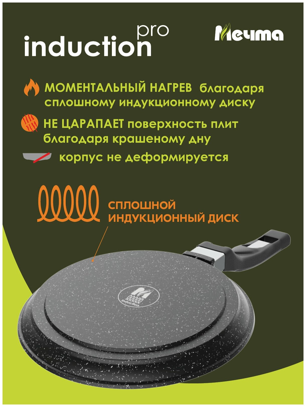 СохранитьСковорода блинная Мeчта 24 см Гранит с антипригарным покрытием с несъемной ручкой, индукционная интересное: