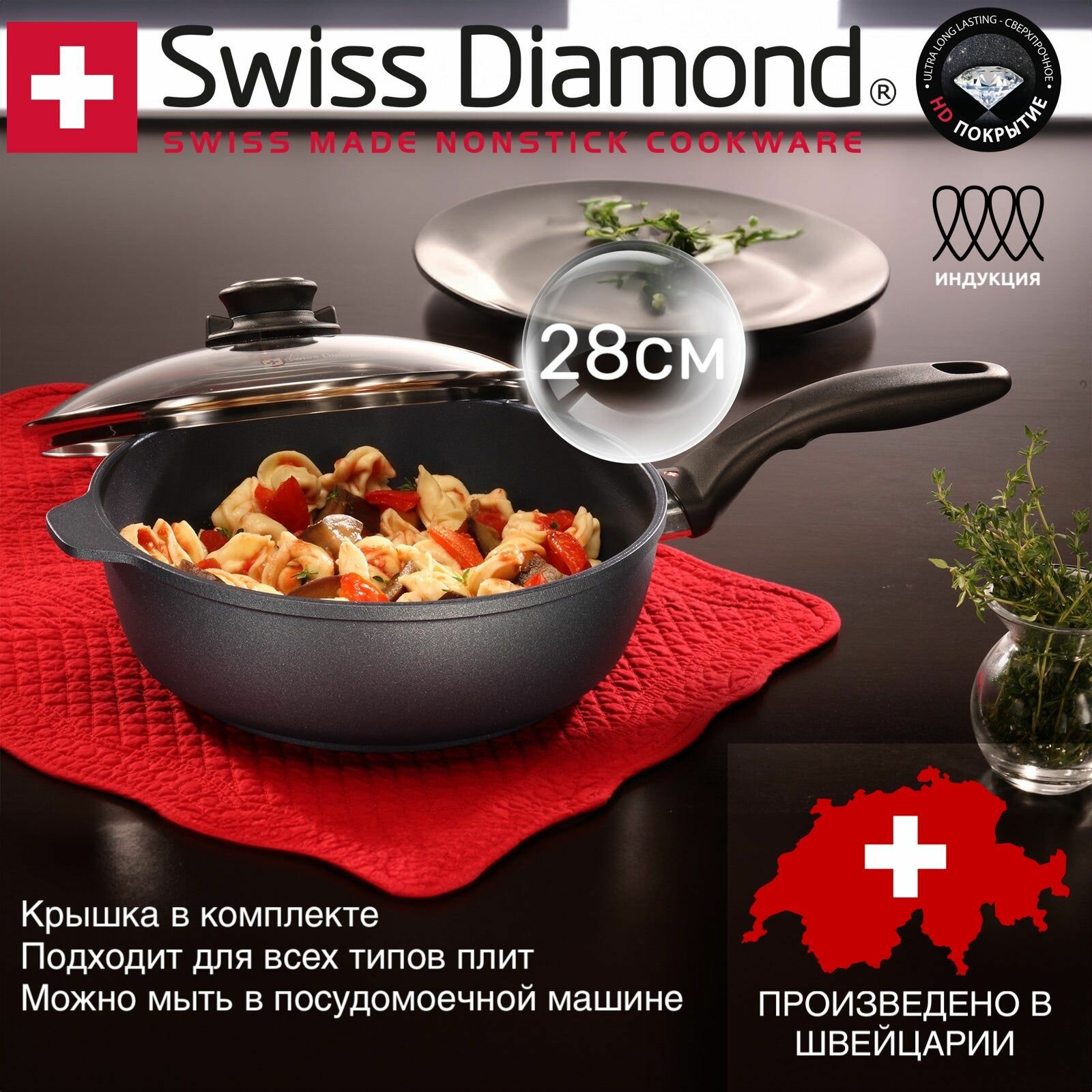 Сотейник Swiss Diamond SD6728ic 28см со стеклянной крышкой, подходит для индукции