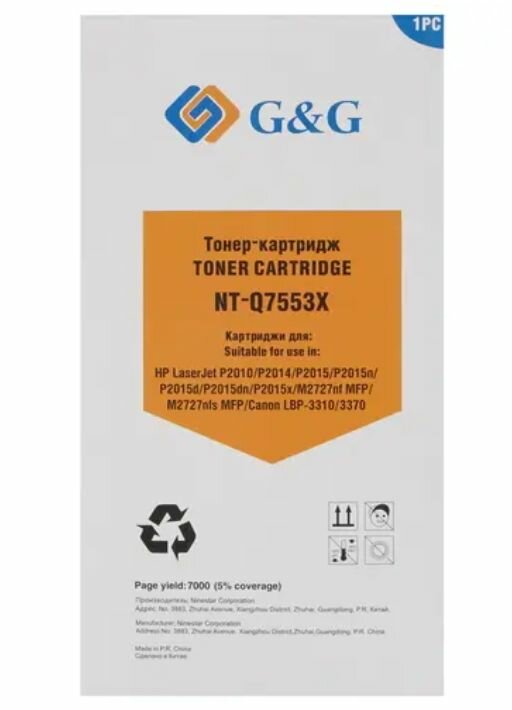 Картридж G&G Nt-q7553x Black для HP LaserJet P2015/2015d/2015n/m2727nf (повышенной ёмкости) .