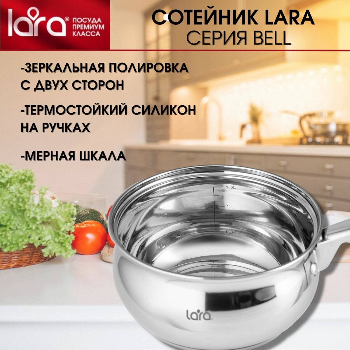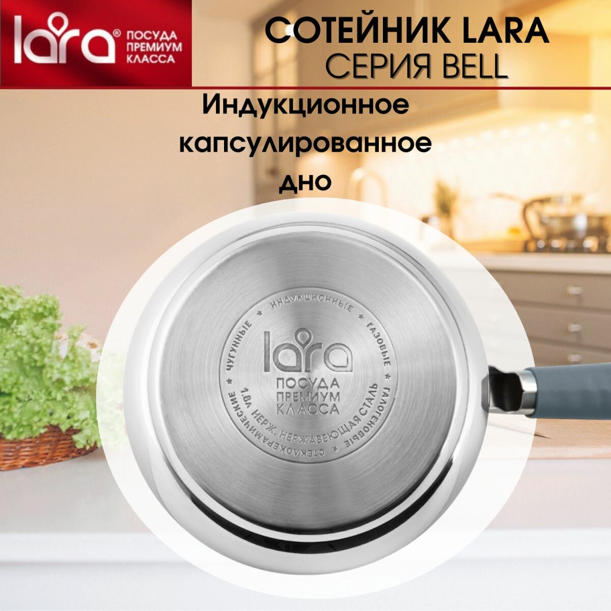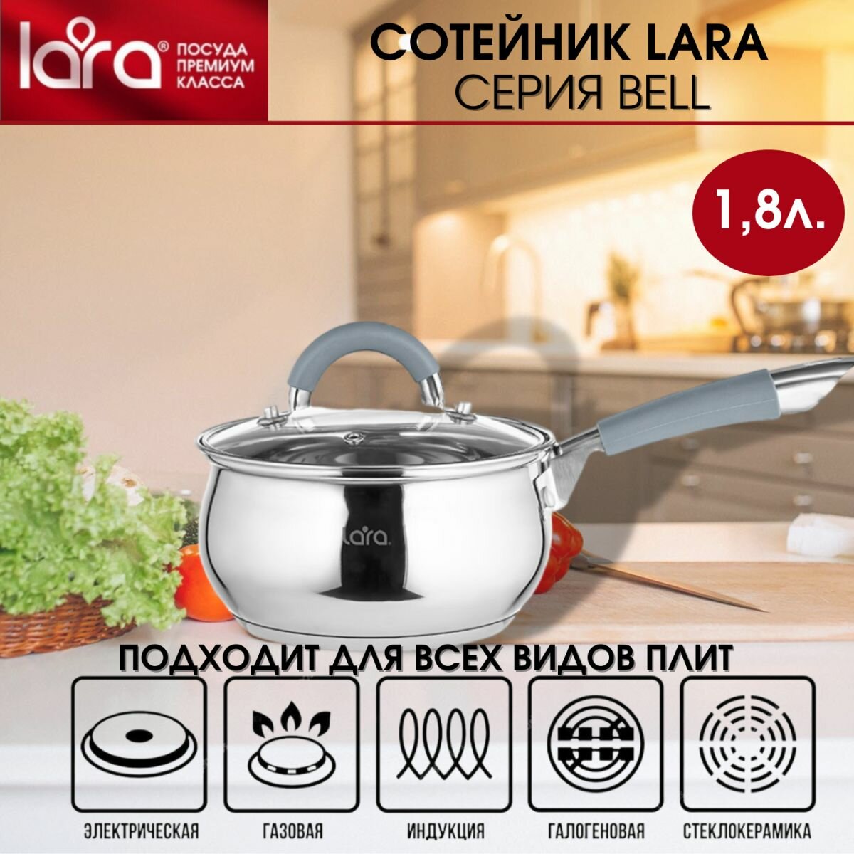 Сотейник LARA LR03-14 серия BELL /нерж, 16х8,5см, 1,8л, капсулир, индукц. дно, крышка