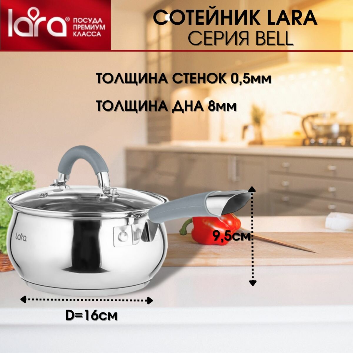 Сотейник LARA LR03-14 серия BELL /нерж., 16х8,5см, 1,8л, капсулир,индукц. дно, крышка
