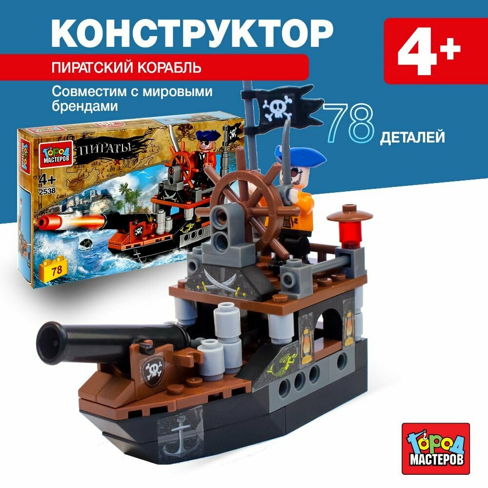 Купить Детский конструктор для мальчиков Пиратский корабль 78 деталей Город Мастеров