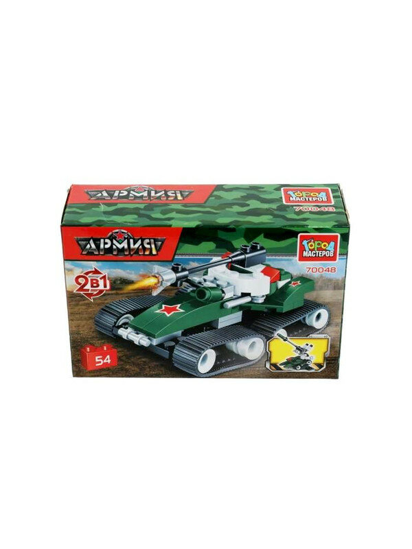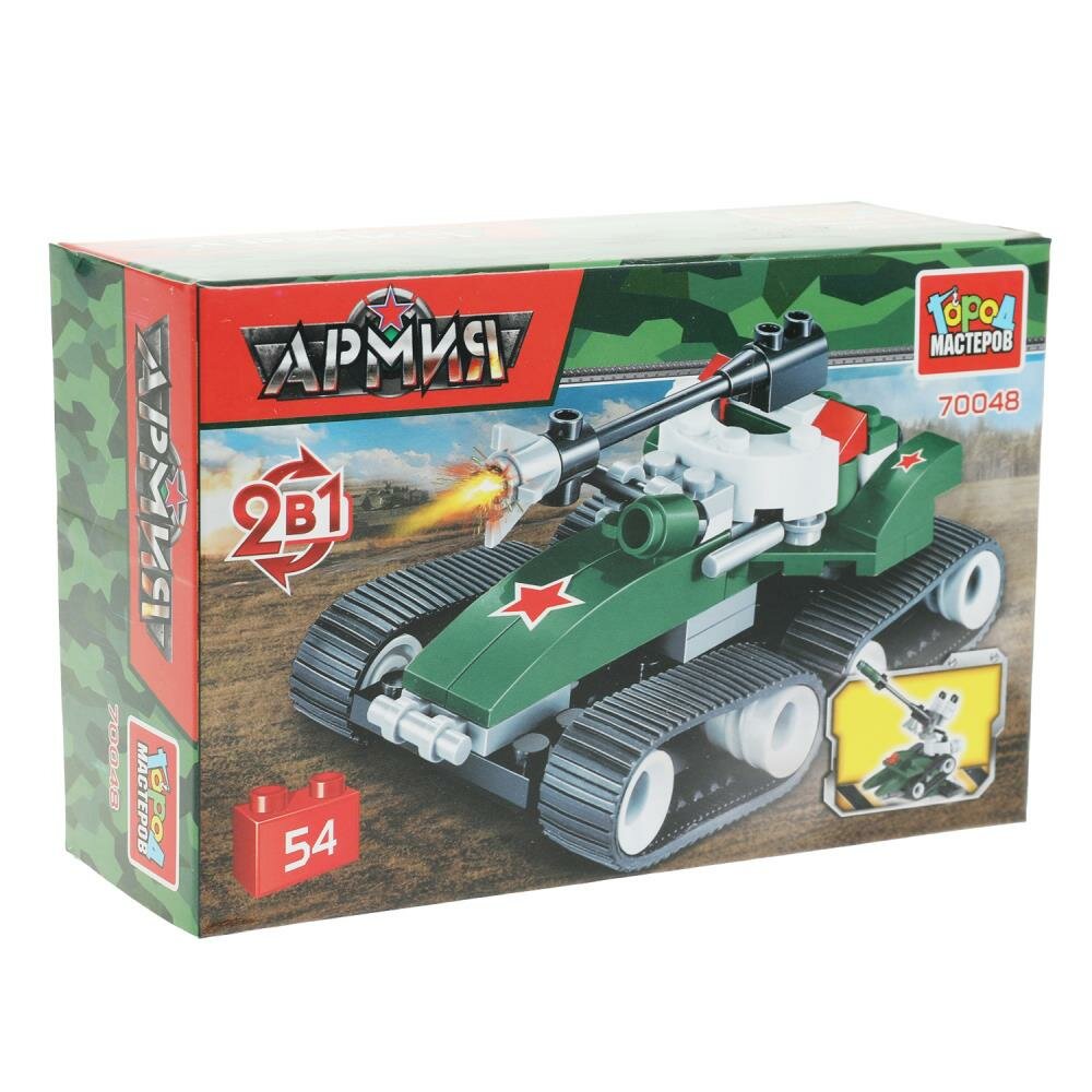 Детский конструктор для мальчиков Армия Танк 54 детали / Игровой набор 2 в 1 Город Мастеров