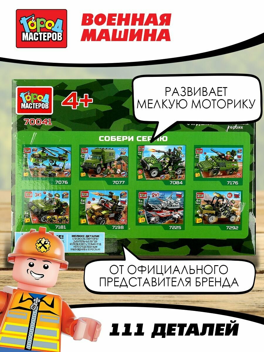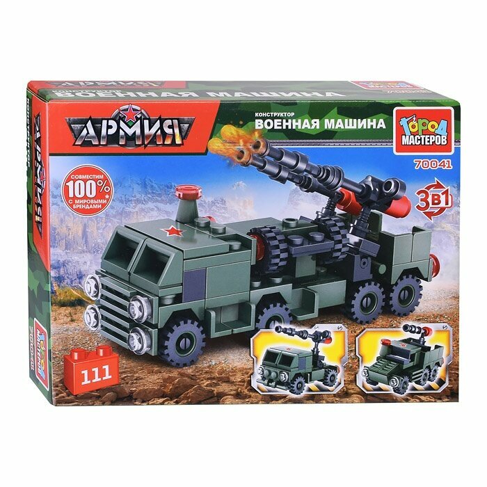 Кконструктор военная машина 3в1, 111 дет. Город мастеров