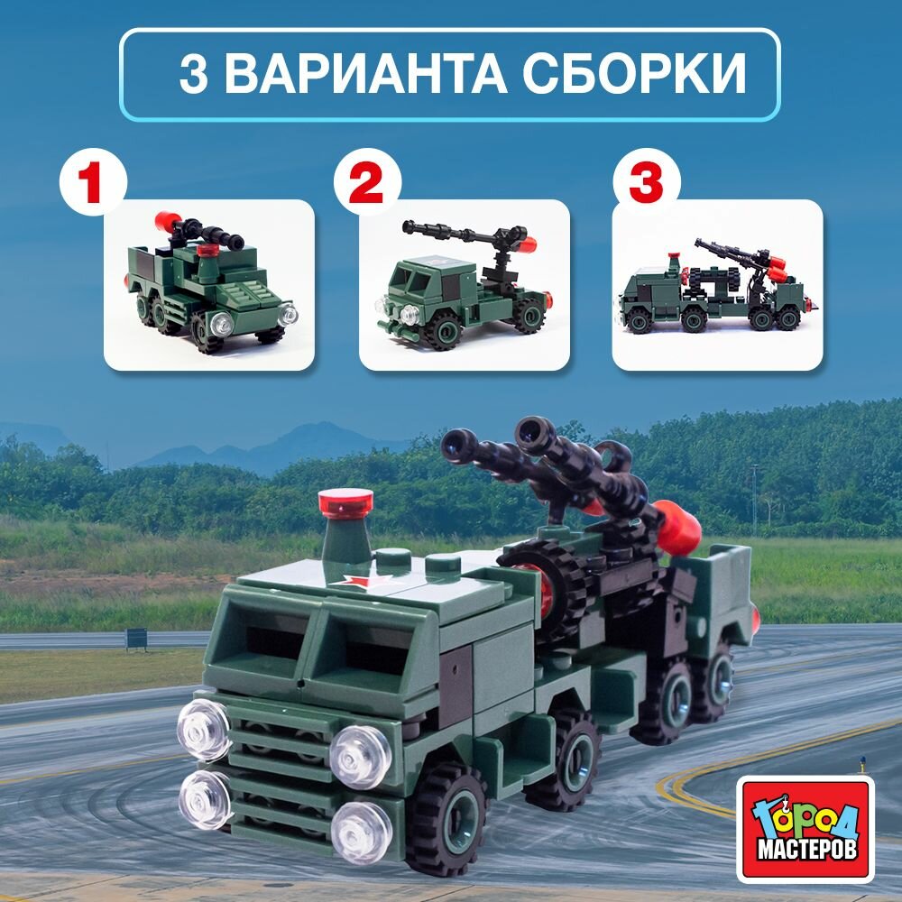 Детский конструктор для мальчиков военная машина 103 детали / Игровой набор 3 в 1 Город Мастеров