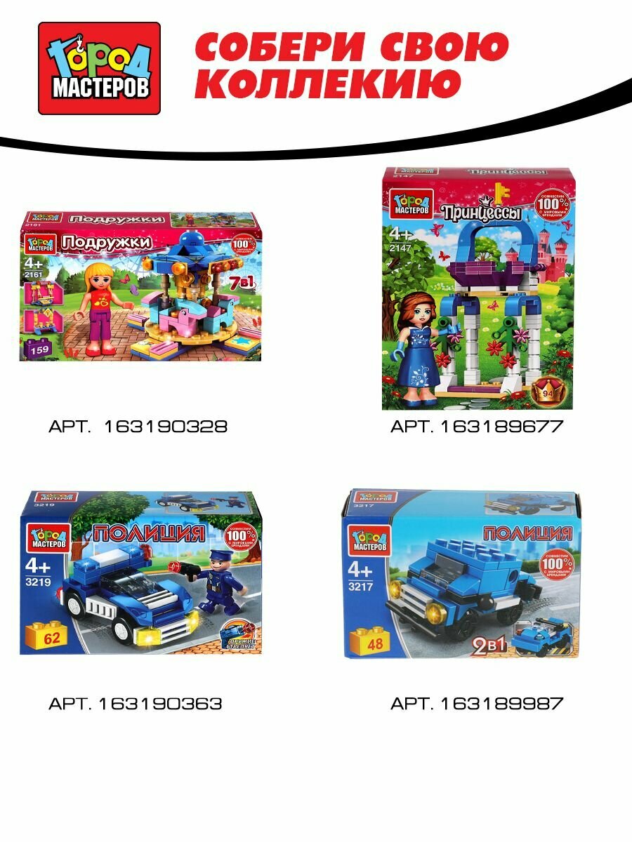 Конструктор полицейский на машине, 64 дет. Город мастеров