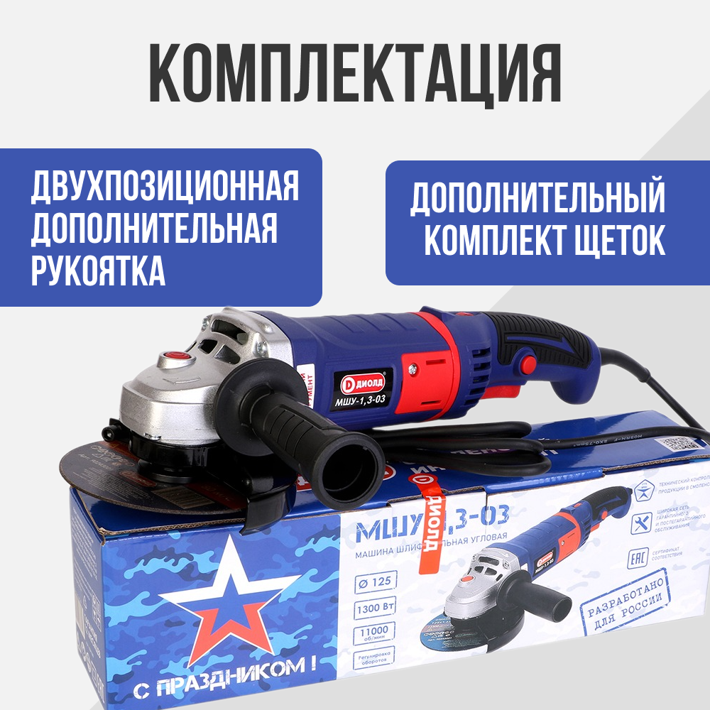 Диолд МШУ-1,3-03 Болгарка/ УШМ/ 1300Вт, 11000 об/мин.