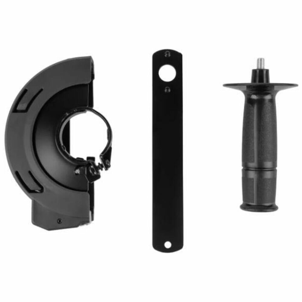 1. Сама УШМ. 2. Ручка. 3. Металличекий защитный кожух. 4. 1 шлифовальный круг. 5. 5 отрезных кругов. 6. Дополнительный пластковый кожух, одевается на основной, на защёлках. В комплектации GA5030X3, по моему, нет доп.кожуха. |