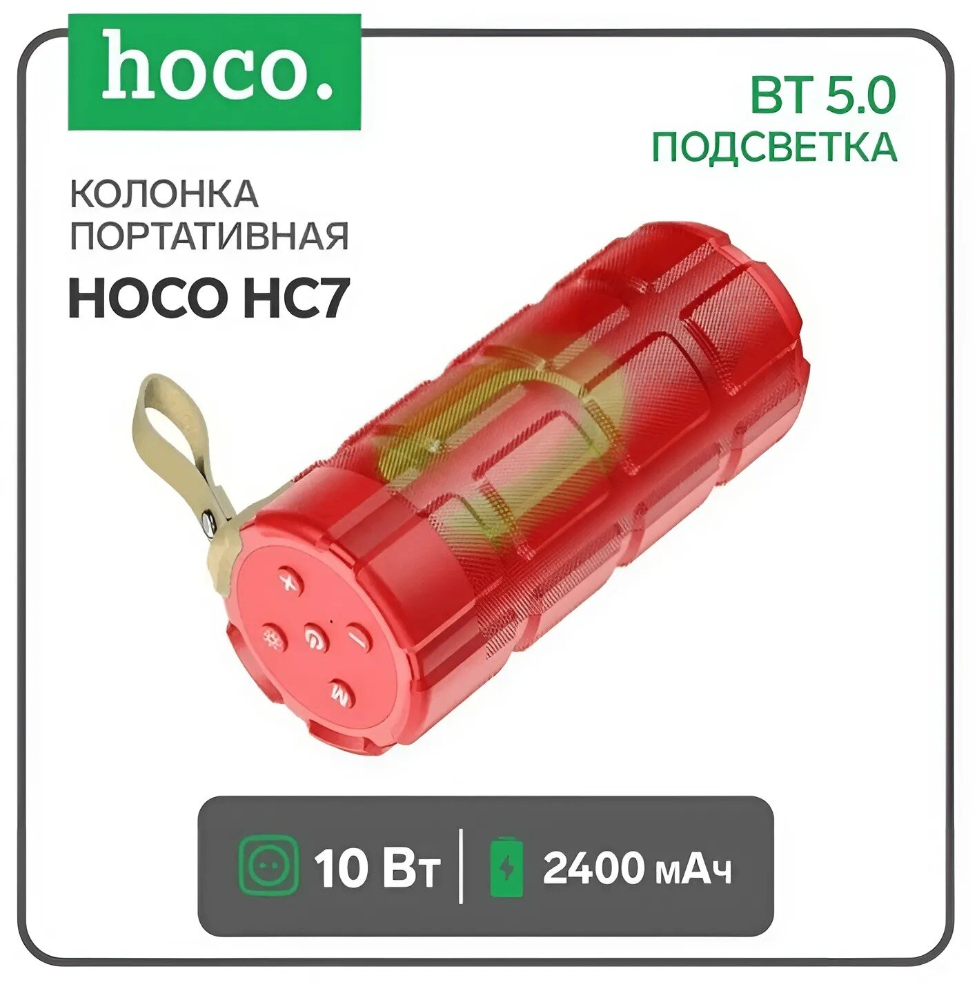 Портативная колонка HOCO HC7, красный, LED подсветка