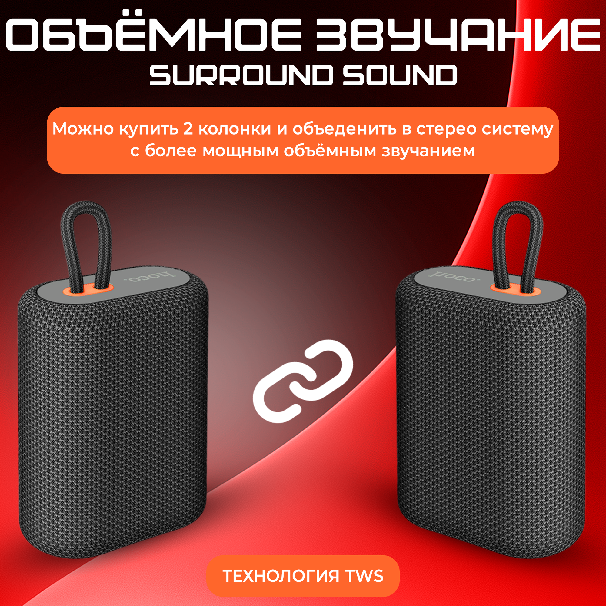 Портативная колонка hoco 6931474755988 BS47, красный, ткань