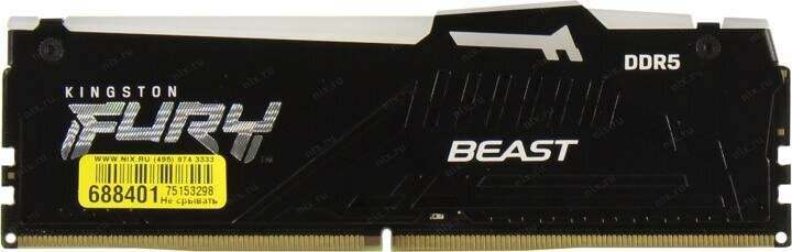 Модуль памяти Kingston Fury Beast Black RGB DDR5 DIMM 6000MHz PC-48000 CL40 - 16Gb KF560C40BBA-16