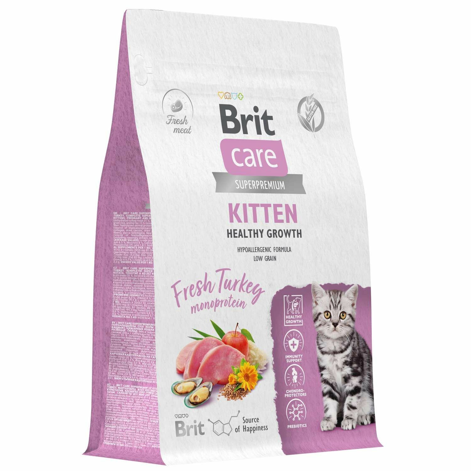 Brit Care Сухой корм Care Cat Kitten Healthy Growth с индейкой для котят беременных и кормящих кошек 5066056 1,500 кг 63330 (1 шт)