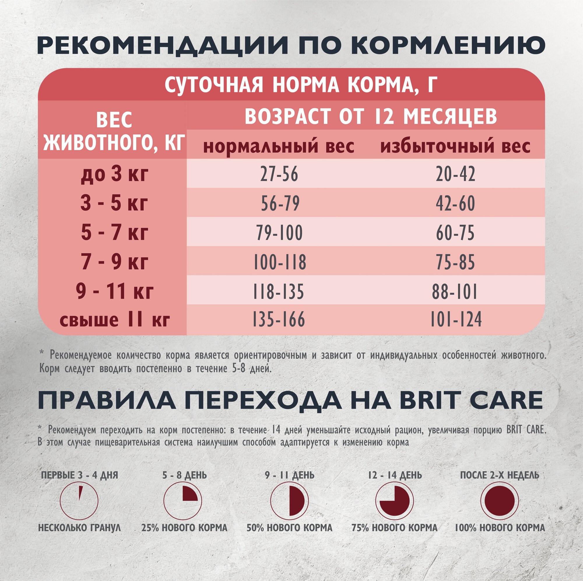 | Дозировка | вес кошки 2-3кг - 30-46 г/день вес кошки 3-5 кг -46-67 г/день вес кошки 5-7 кг - 67-80 г/день вес кошки 8-10 кг - 91-114 г/день |