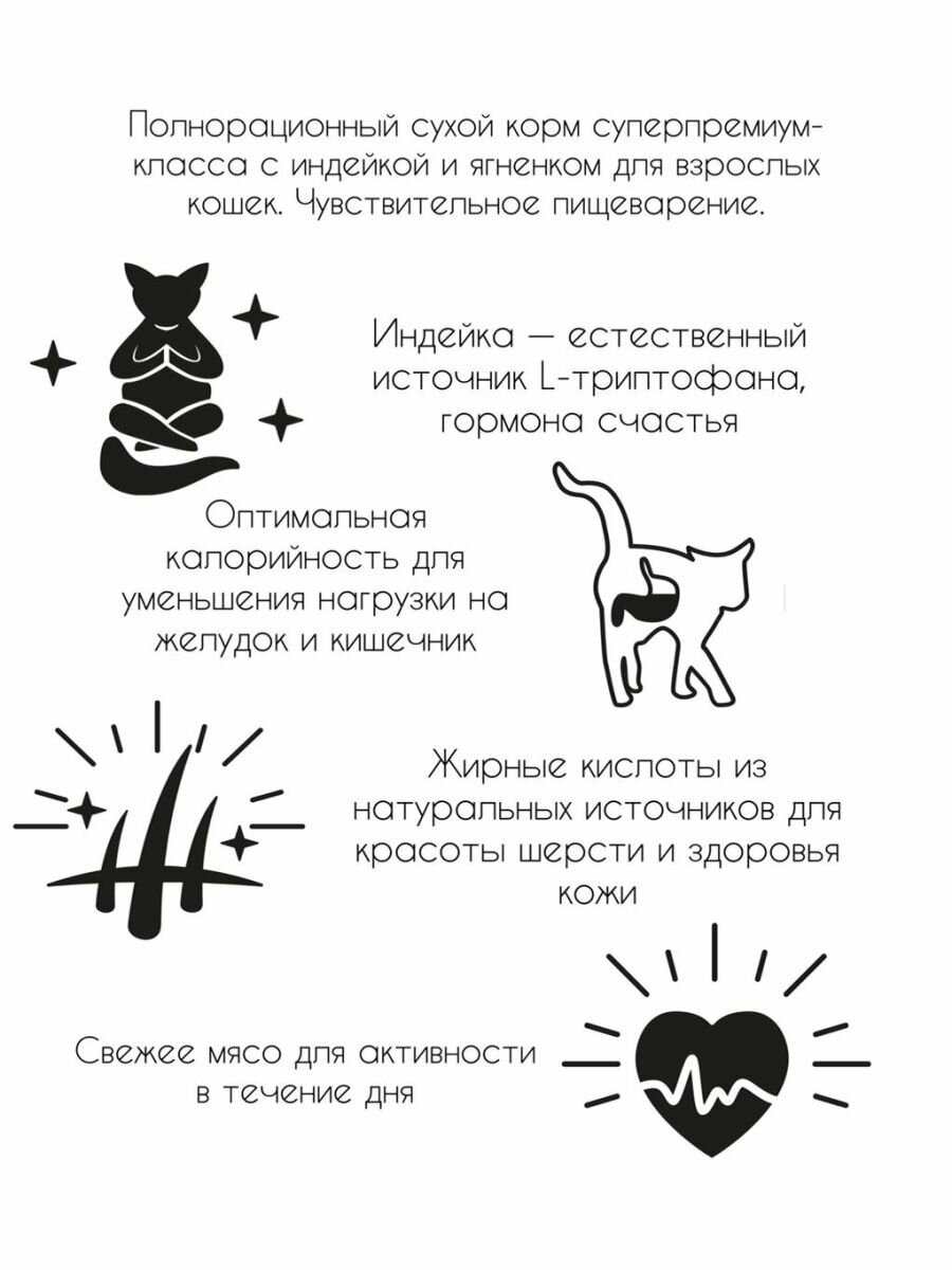 Сухой корм с индейкой и ягненком для взрослых кошек с чувствительным пищеварением