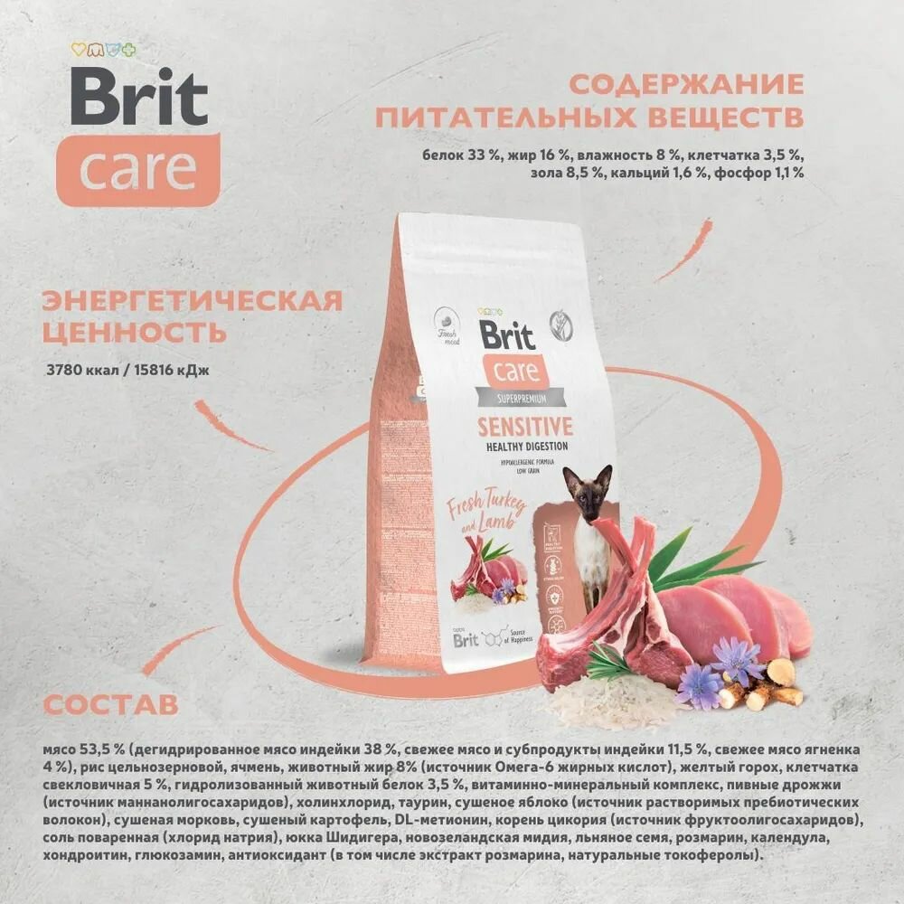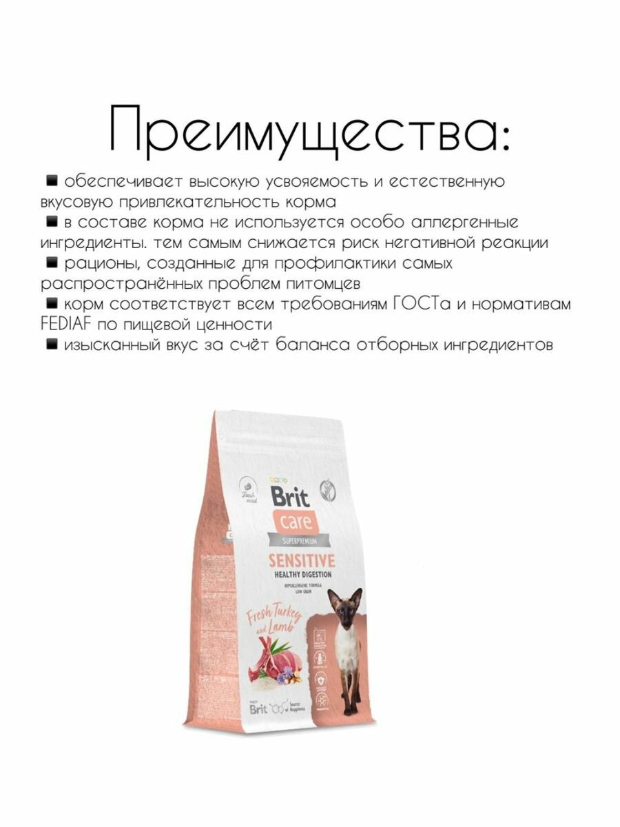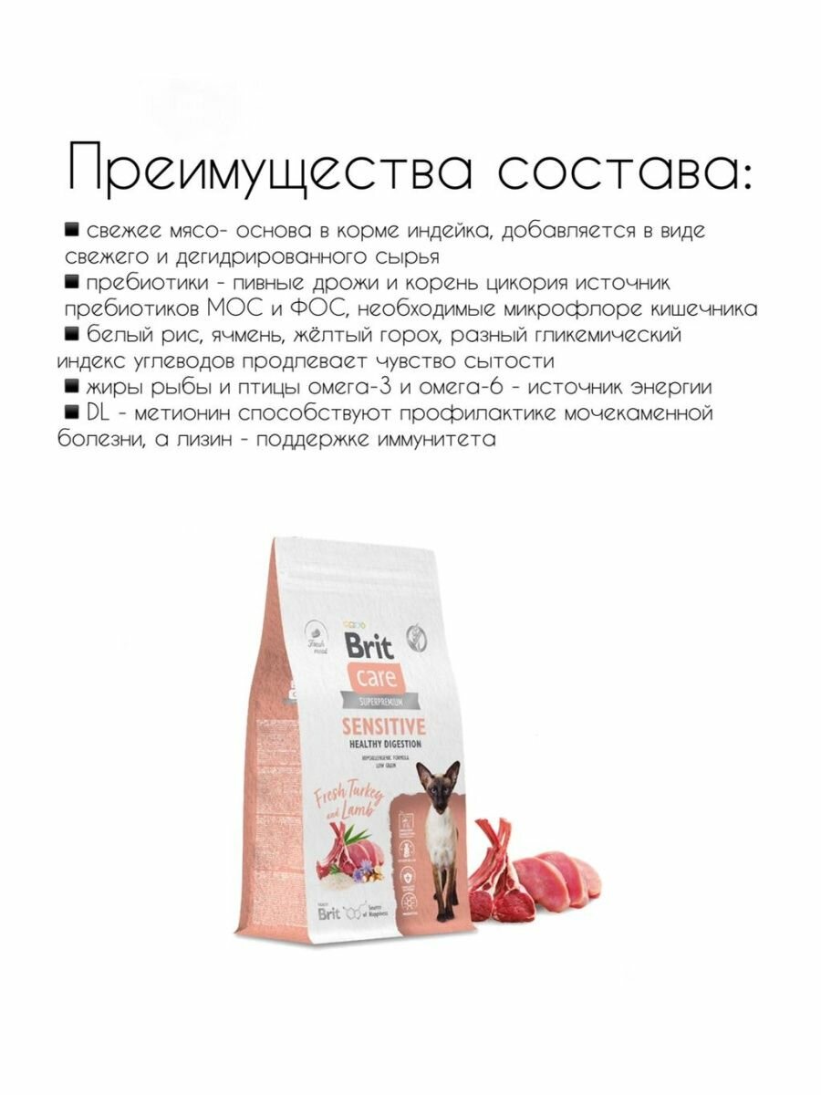 Купить Корм сухой Brit CARE Cat Sensitive Healthy Digestion для взрослых кошек с чувствительным пищеварением с индейкой и ягнёнком 1.5 кг