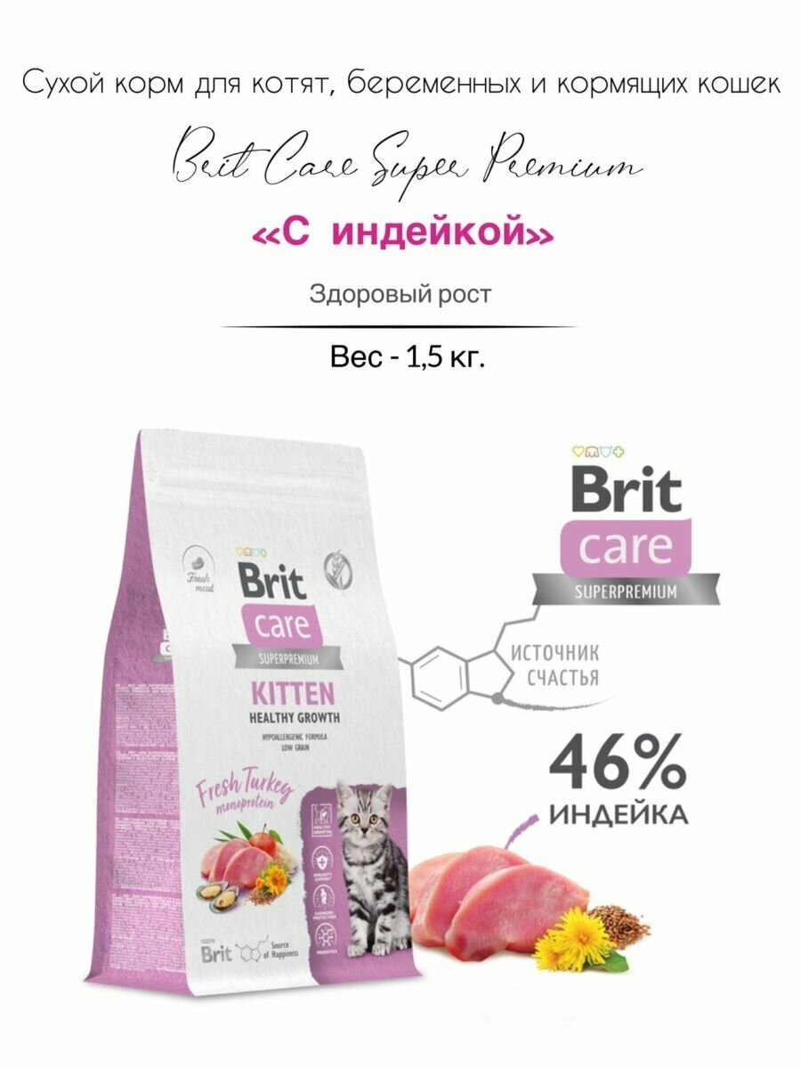 Brit Care Сухой корм Care Cat Kitten Healthy Growth с индейкой для котят беременных и кормящих кошек 5066056 1,500 кг 63330 (1 шт)