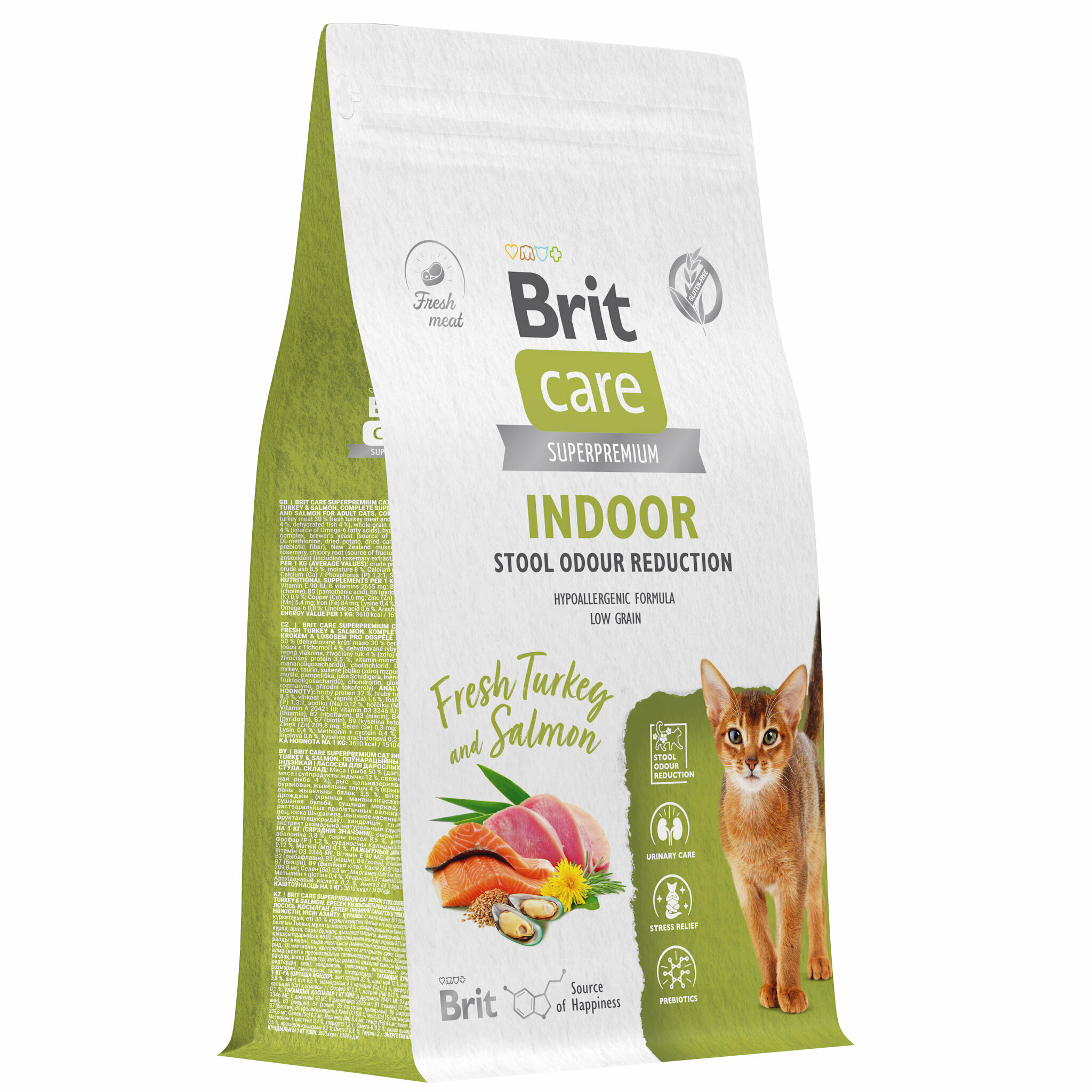 Brit Care Сухой корм Care Cat Indoor Stool Odour Reduction с индейкой и лососем для взрослых кошек 5066117 1,500 кг 63347 (1 шт)