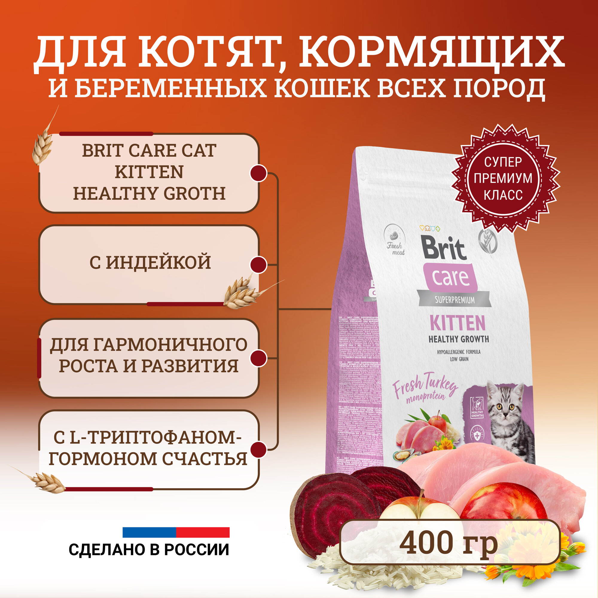 Brit Care Сухой корм Care Cat Kitten Healthy Growth с индейкой для котят беременных и кормящих кошек 5065561 0,400 кг 63329 (1 шт)