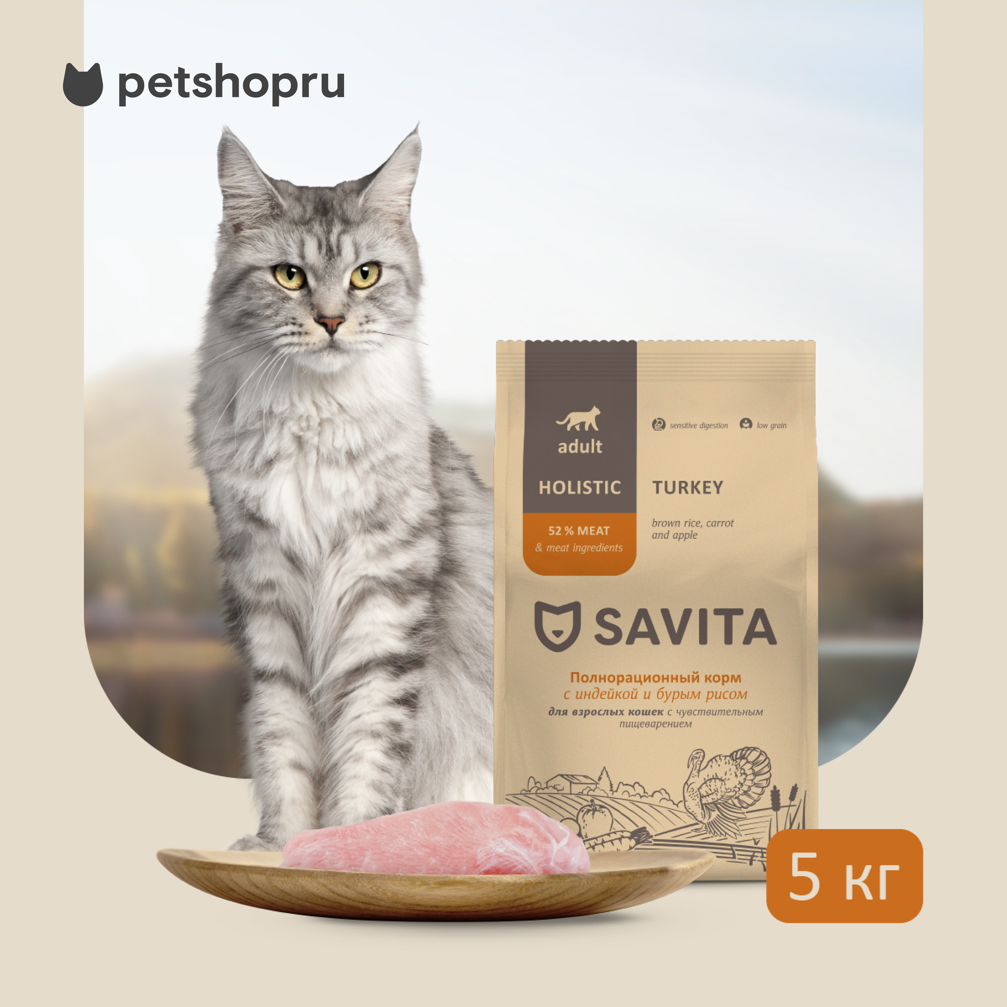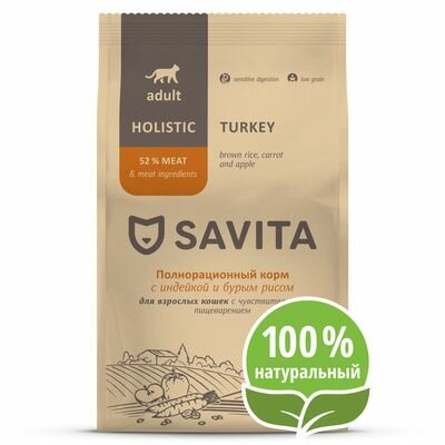 Купить SAVITA для взрослых кошек с чувствительным пищеварением с индейкой и бурым рисом (5 кг)