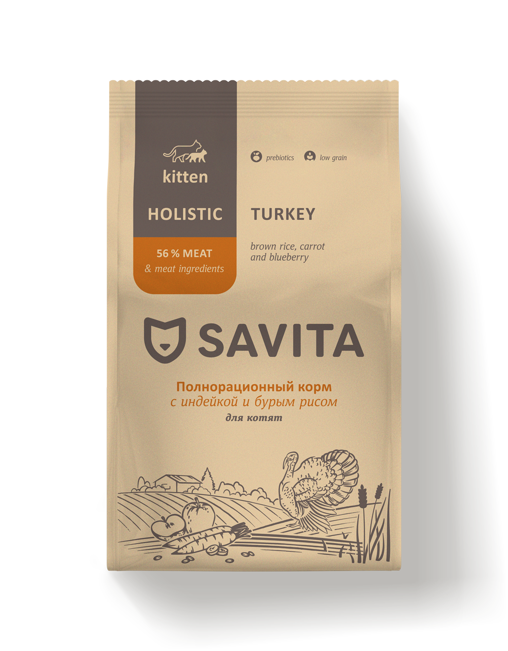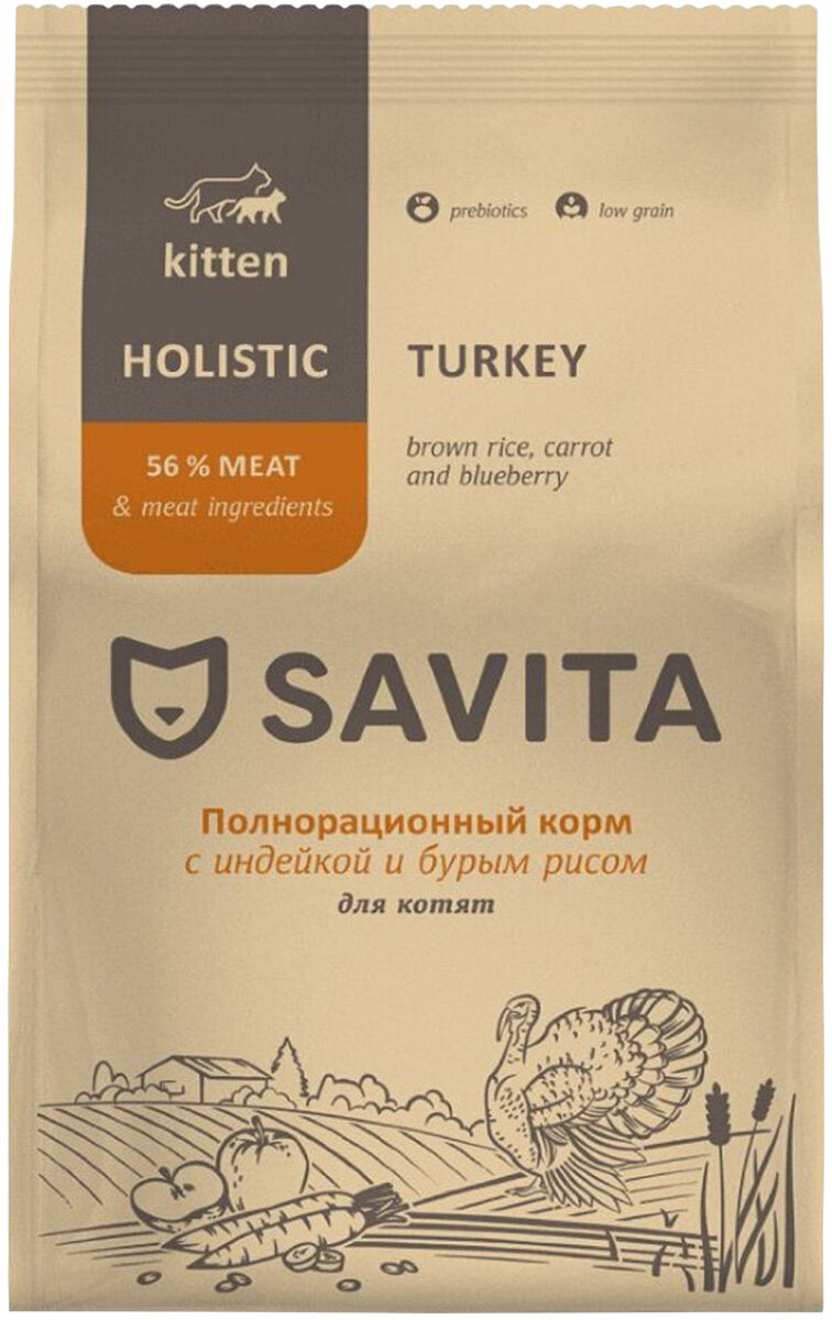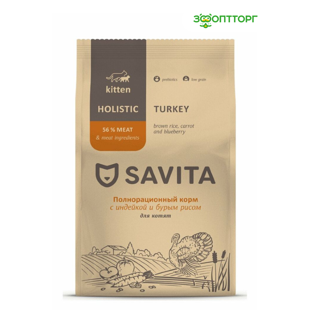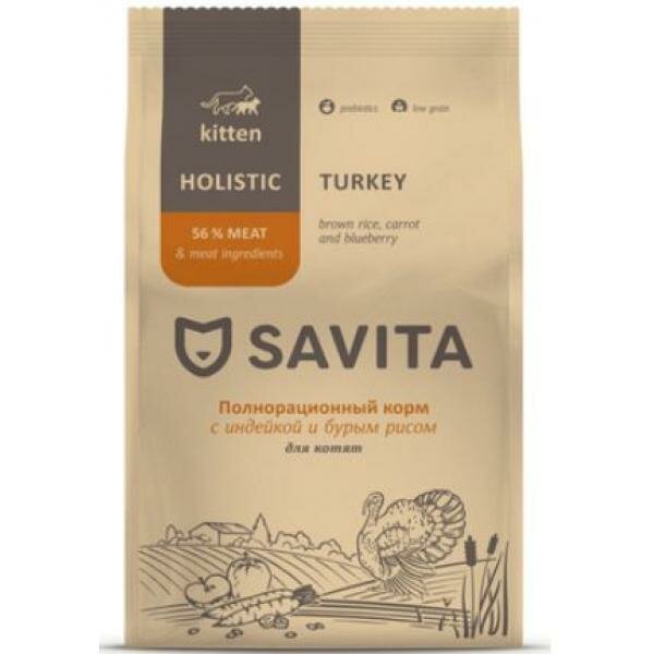 Корм Savita для котят, индейка с бурым рисом, 2 кг