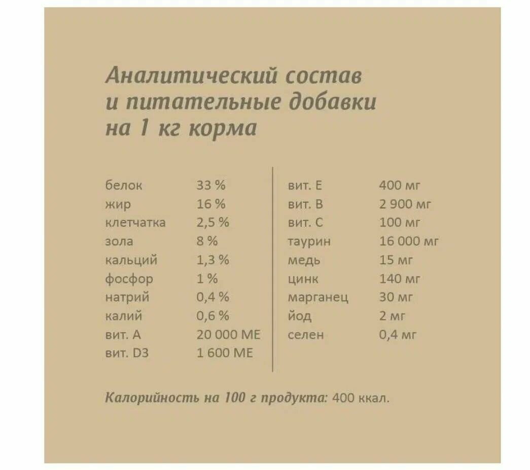 А также высокое содержание витамина А: 20000 МЕ. И витамина D: 1600 МЕ. Остальные ингредиенты тоже натуральные. Кошкам (18 лет и 4 года) очень понравился запах. Едят с удовольствием. Я его даю в смеси с другими кормами: делаю ассорти |
