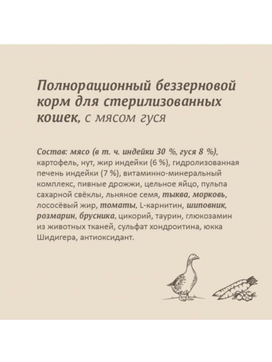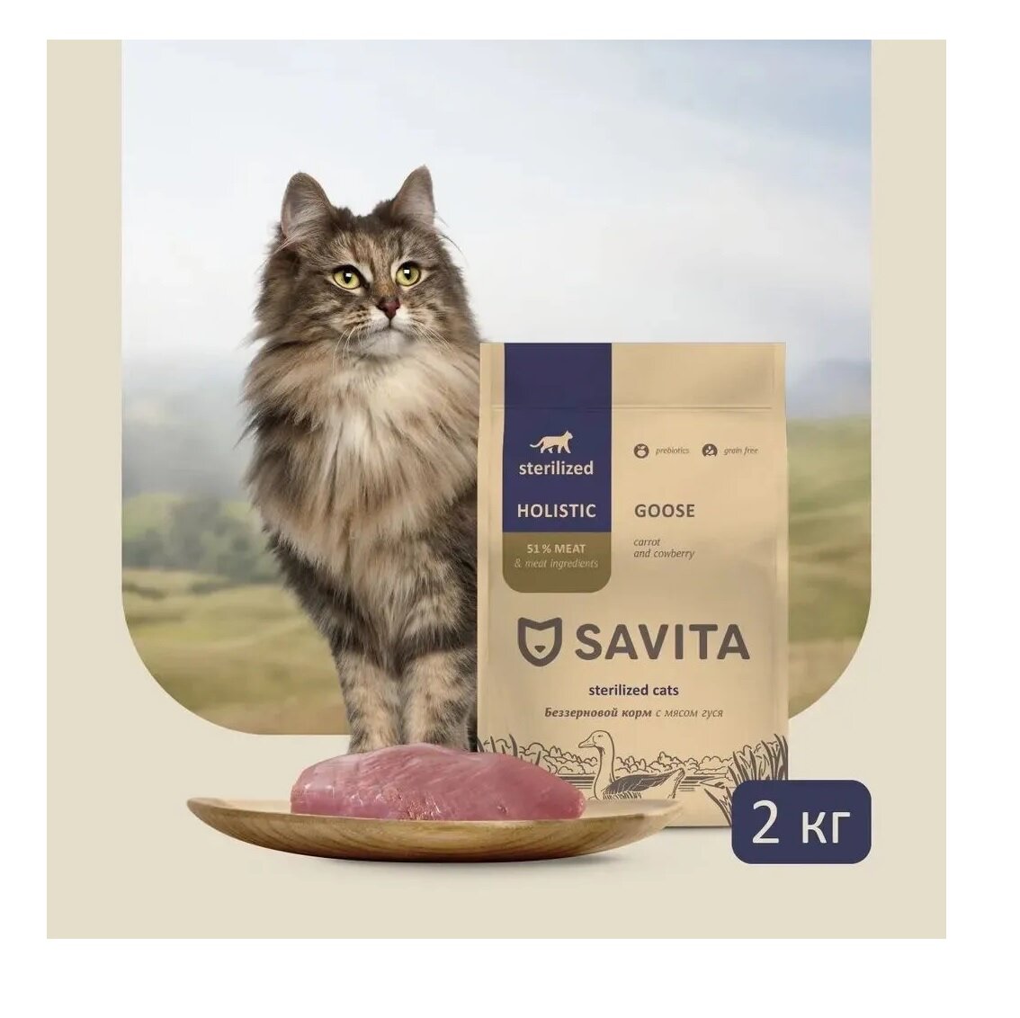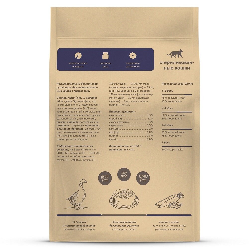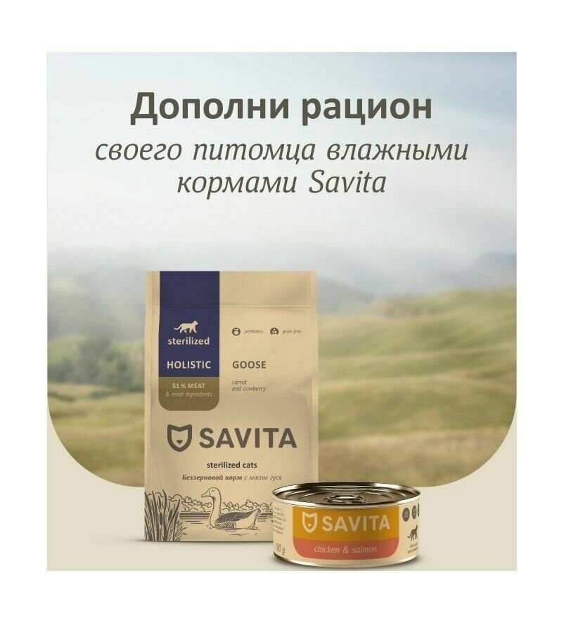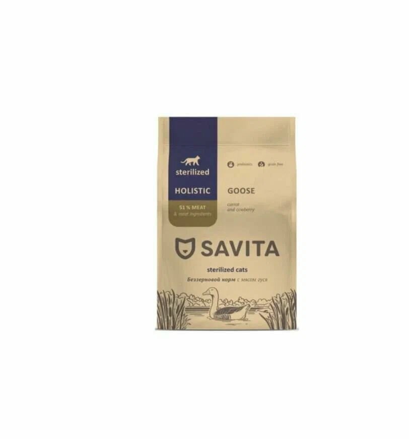 Купить SAVITA Беззерновой корм для стерилизованных кошек с мясом гуся, 2 кг