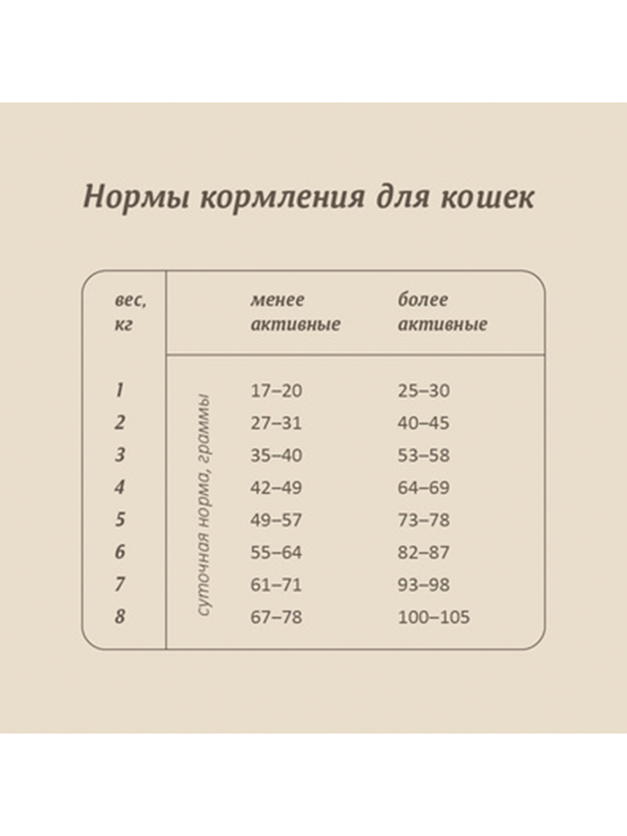 | Особые потребности | беззерновой / для стерилизованных/кастрированных |