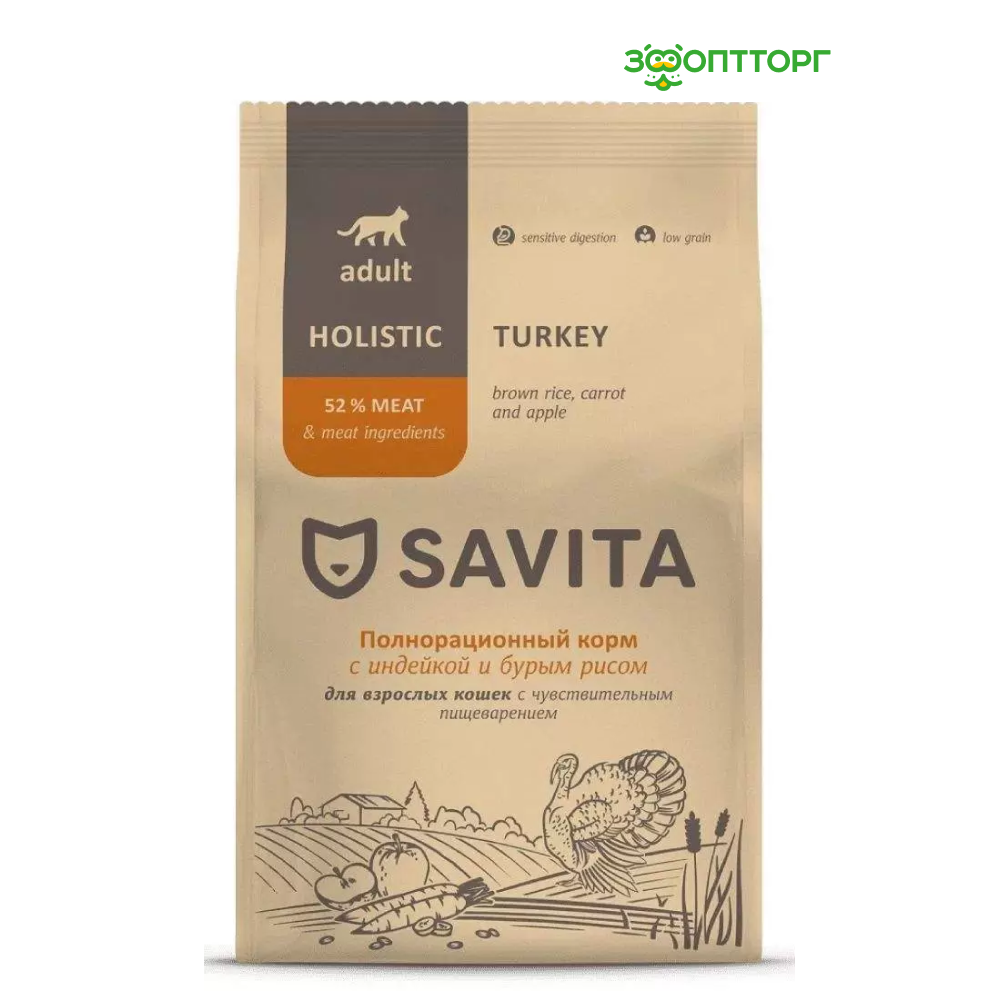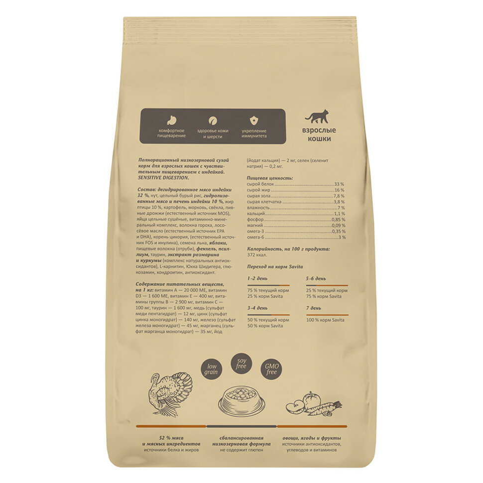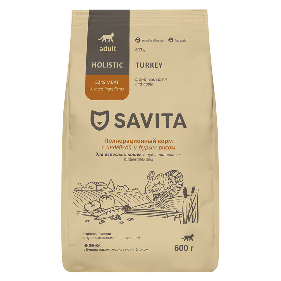SAVITA сухой корм Для кошек с чувствительным пищеварением с индейкой и бурым рисом. SENSITIVE DIGESTION 0,600 кг 62579 (1 шт)