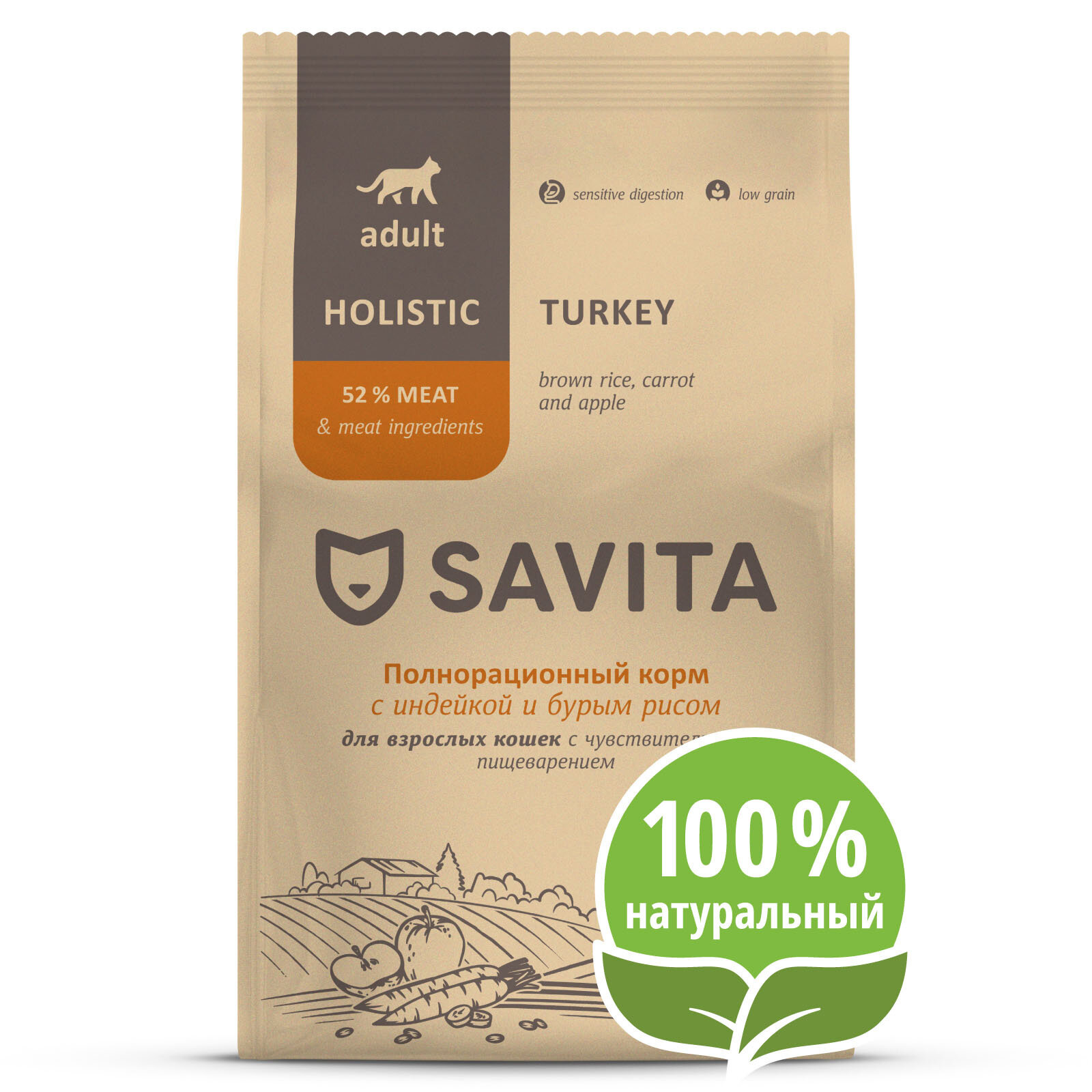 Купить SAVITA Для кошек с чувствительным пищеварением с индейкой и бурым рисом 600 г
