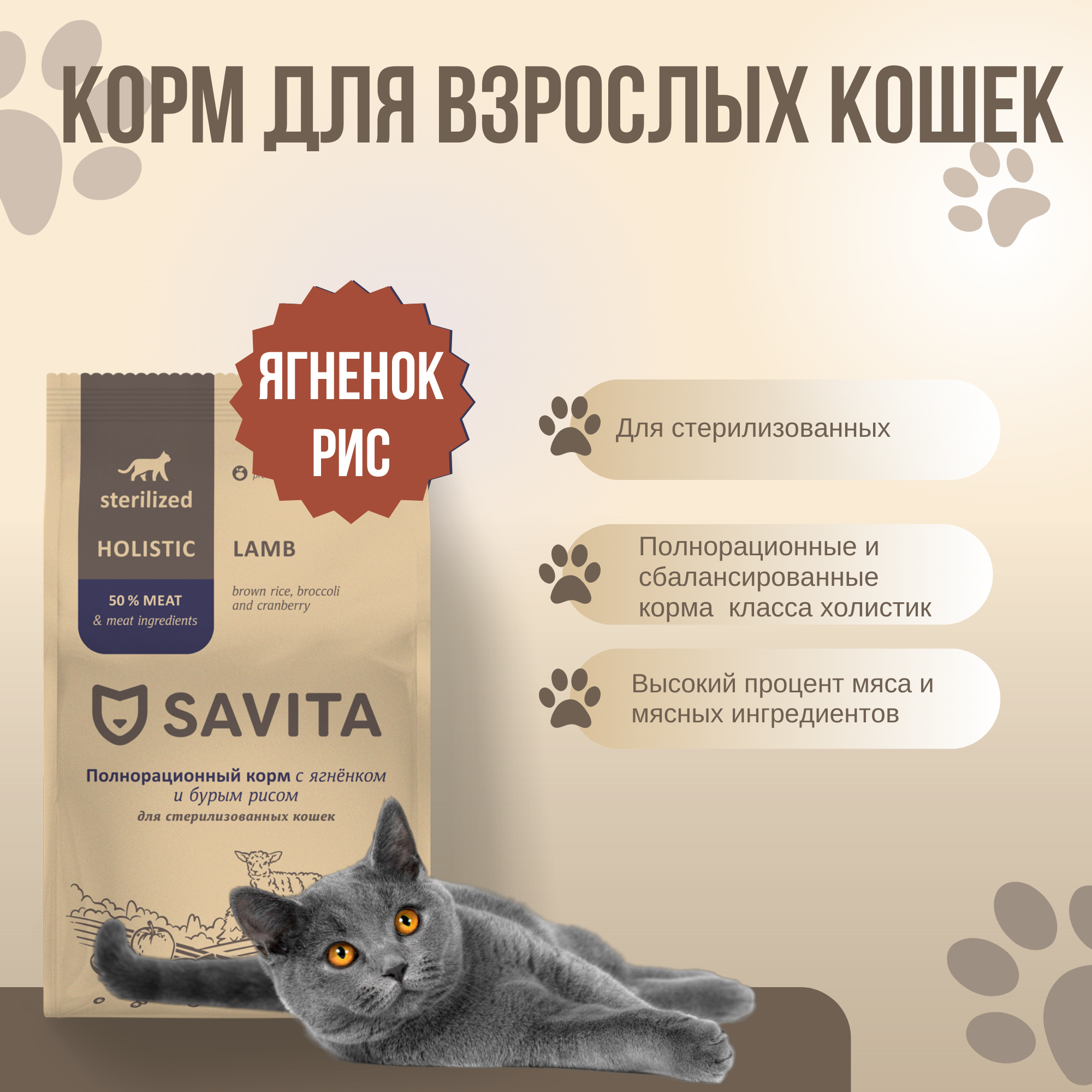 SAVITA для стерилизованных кошек с ягненком и бурым рисом (2 кг)