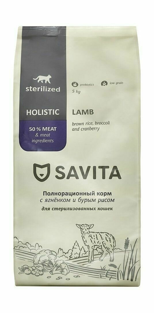 SAVITA для стерилизованных кошек с ягненком и бурым рисом 5 кг