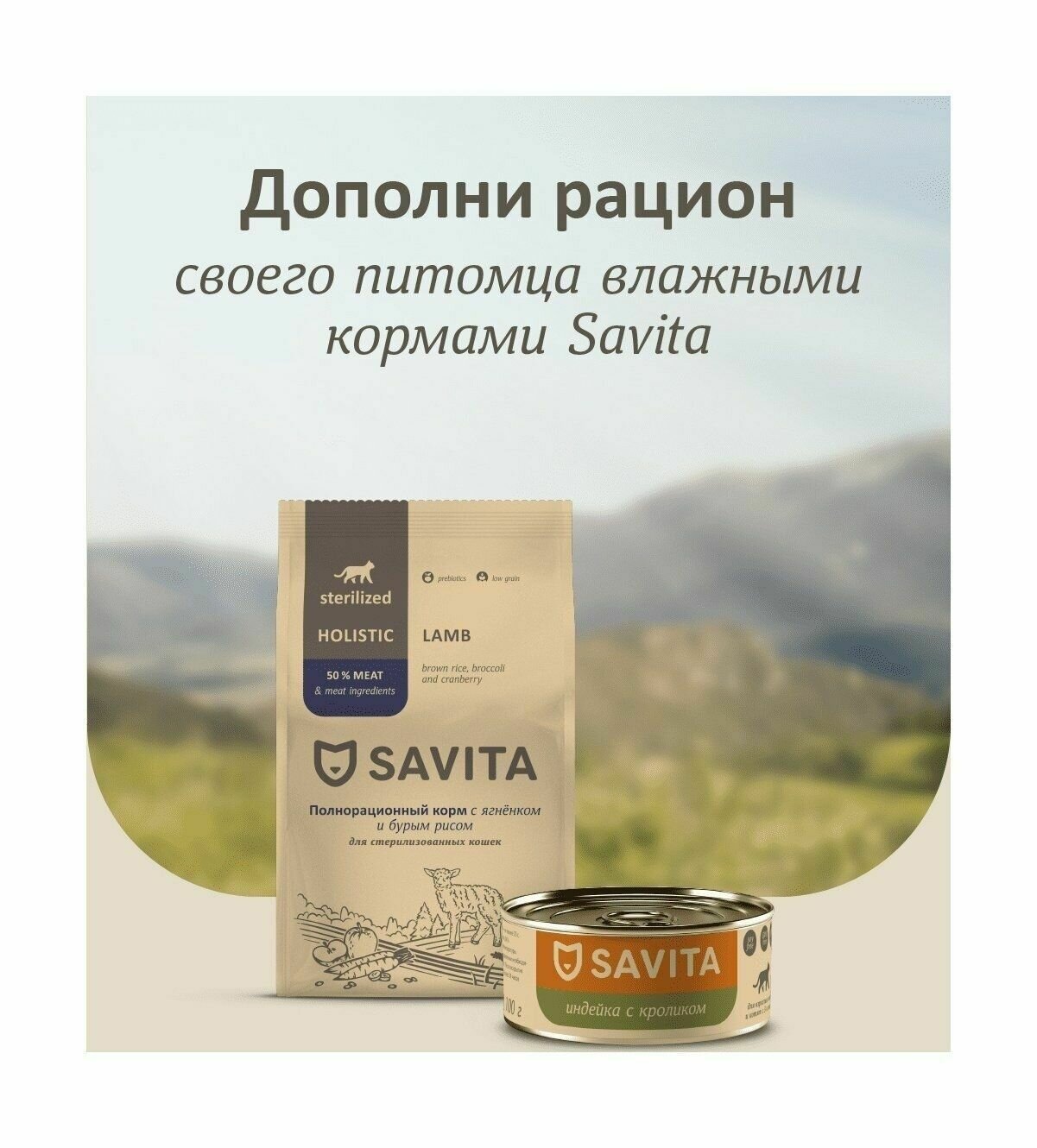 Корм SAVITA беззерновой корм для стерилизованных кошек с кроликом (2 кг)