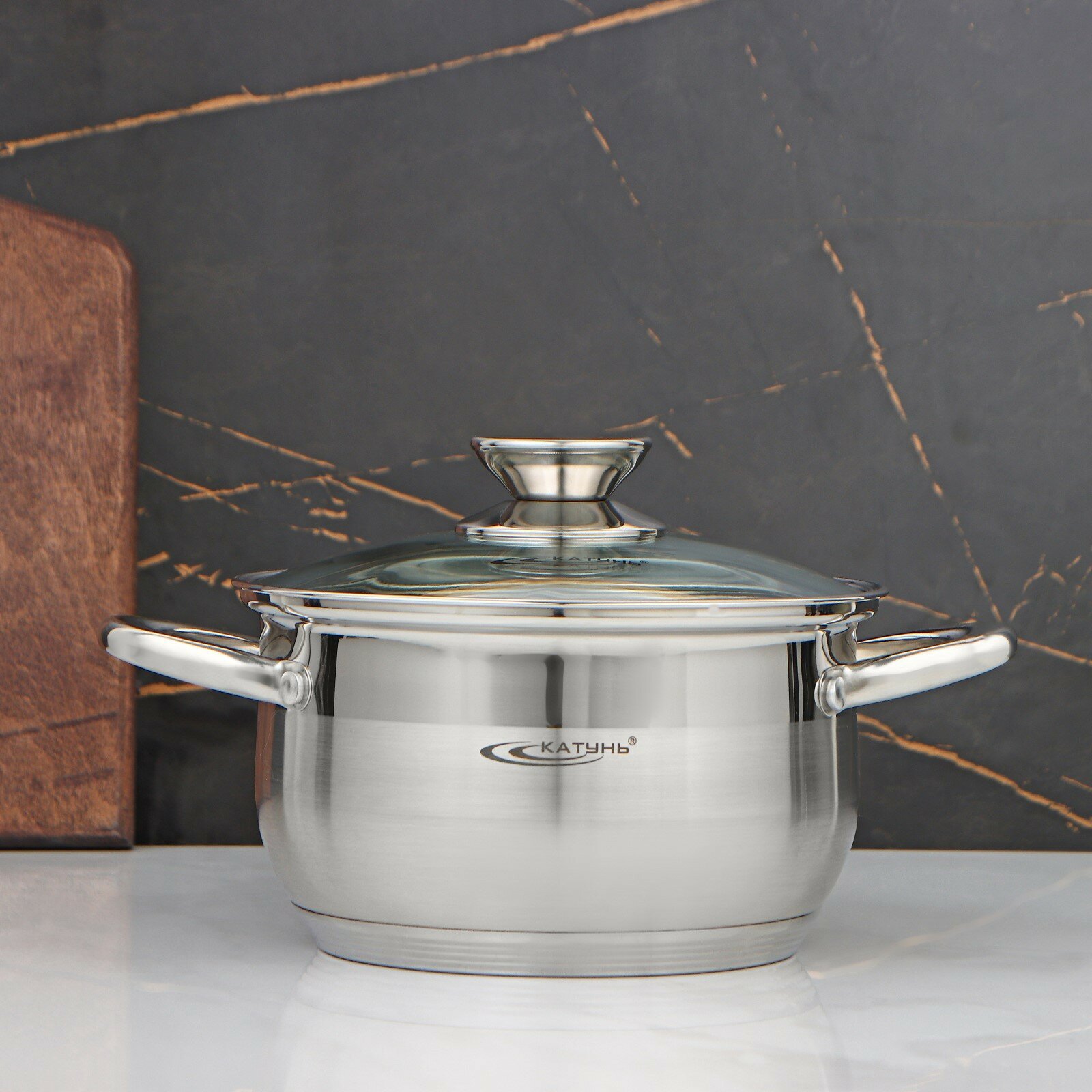 Купить Кастрюля "Катунь" «Диана», 2.5 л, d=18 см, стеклянная крышка, капсульное дно, индукция