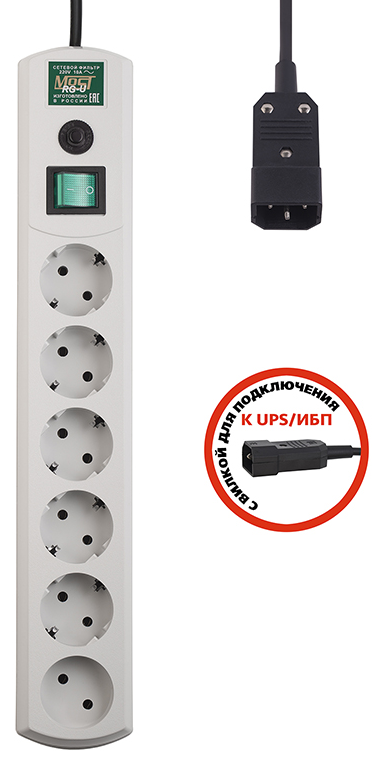 Сетевой фильтр MOST rg-u, вилка для подключения к ИБП(ups), 6 розеток 3м .