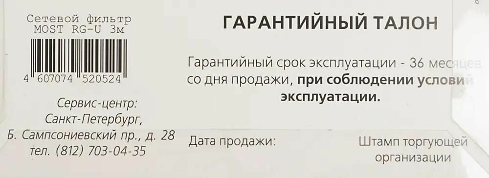 Сетевой фильтр Most RG-U 3м белый (моst rg-u 3м)