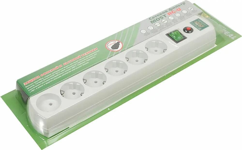 Сетевой фильтр MOST Real RG-U, 6 розеток, с/з, 10А / 2200 Вт белый 3 м 380 мм 60 мм 50 мм 6