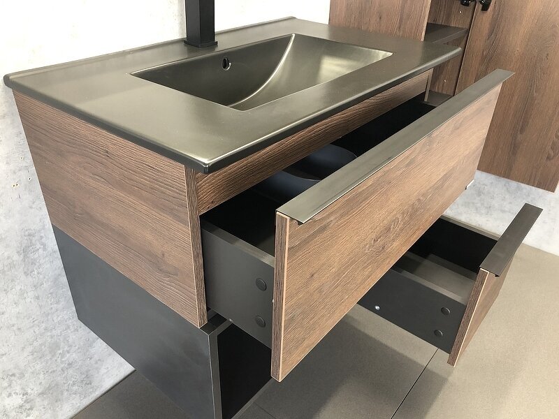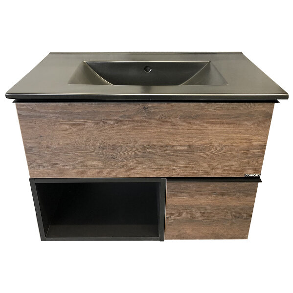 Comforty Тумба с раковиной Франкфурт 75 00-00000889 подвесная Дуб шоколадно-коричневый Черная матовая
