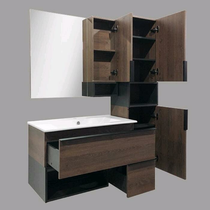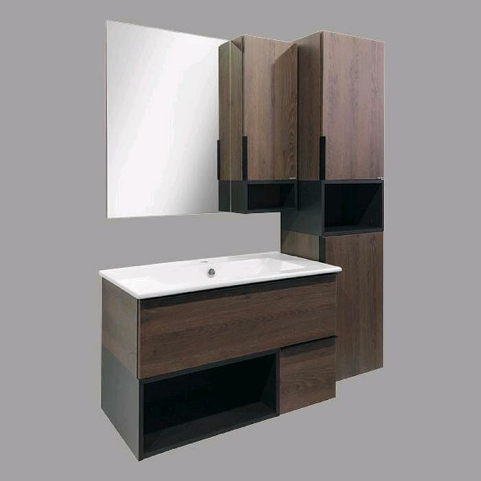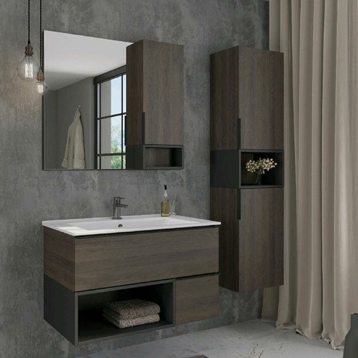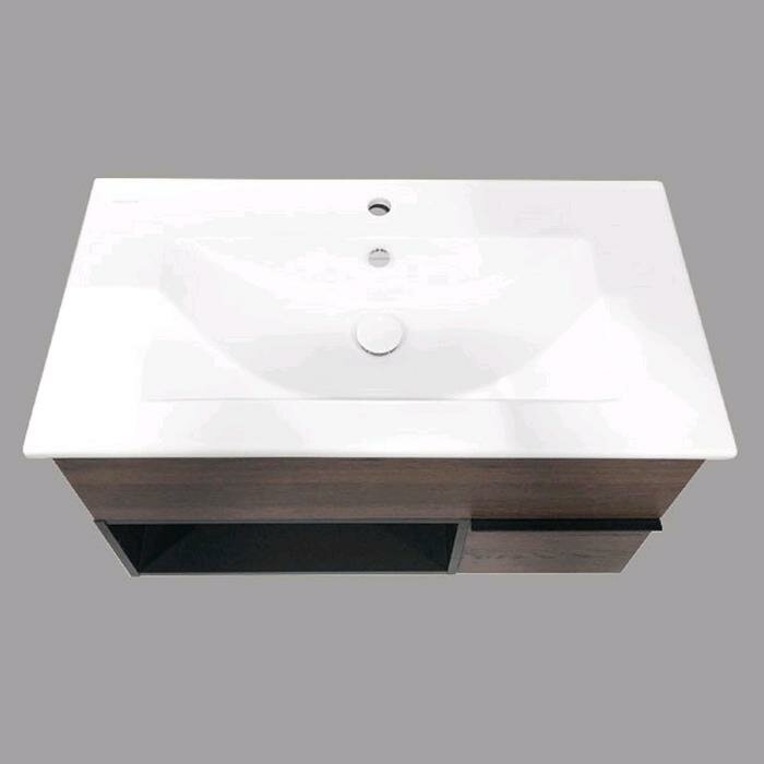 Тумба с раковиной Comforty Порто 90 9110 подвесная дуб темно-коричневый/черный муар