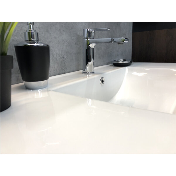Comforty Тумба Амстердам-95 белая с черной матовой столешницей с раковиной Comforty T-Y9378