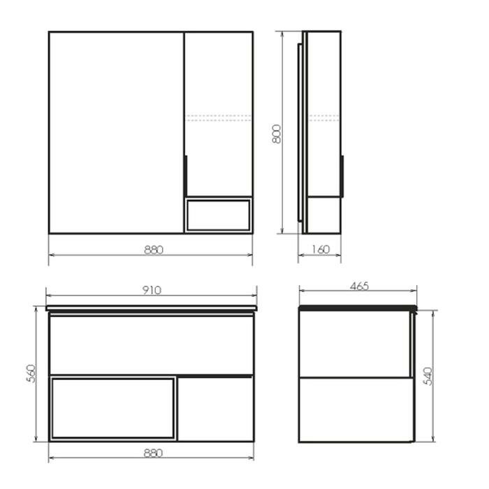 | Комплектация | 2 ящика, 1 полка, 2 ручки для ящиков, раковина Quadro 90 |