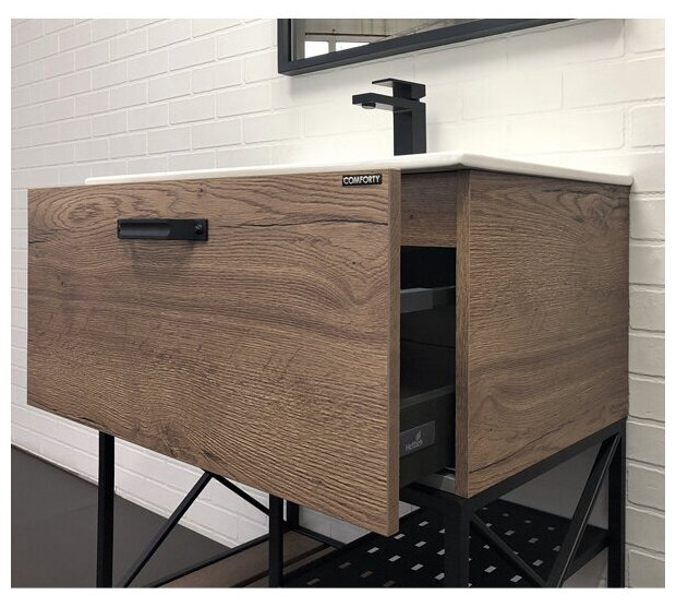 Тумба с раковиной Comforty Бонн 75 дуб темный с раковиной Comforty 75E черная матовая