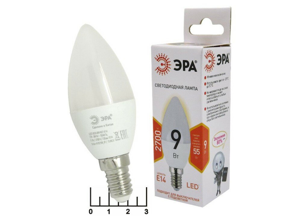 Лампа светодиодная ЭРА STD LED B35-9W-827-E14 E14 / Е14 9Вт свеча теплый белый свет интересное: