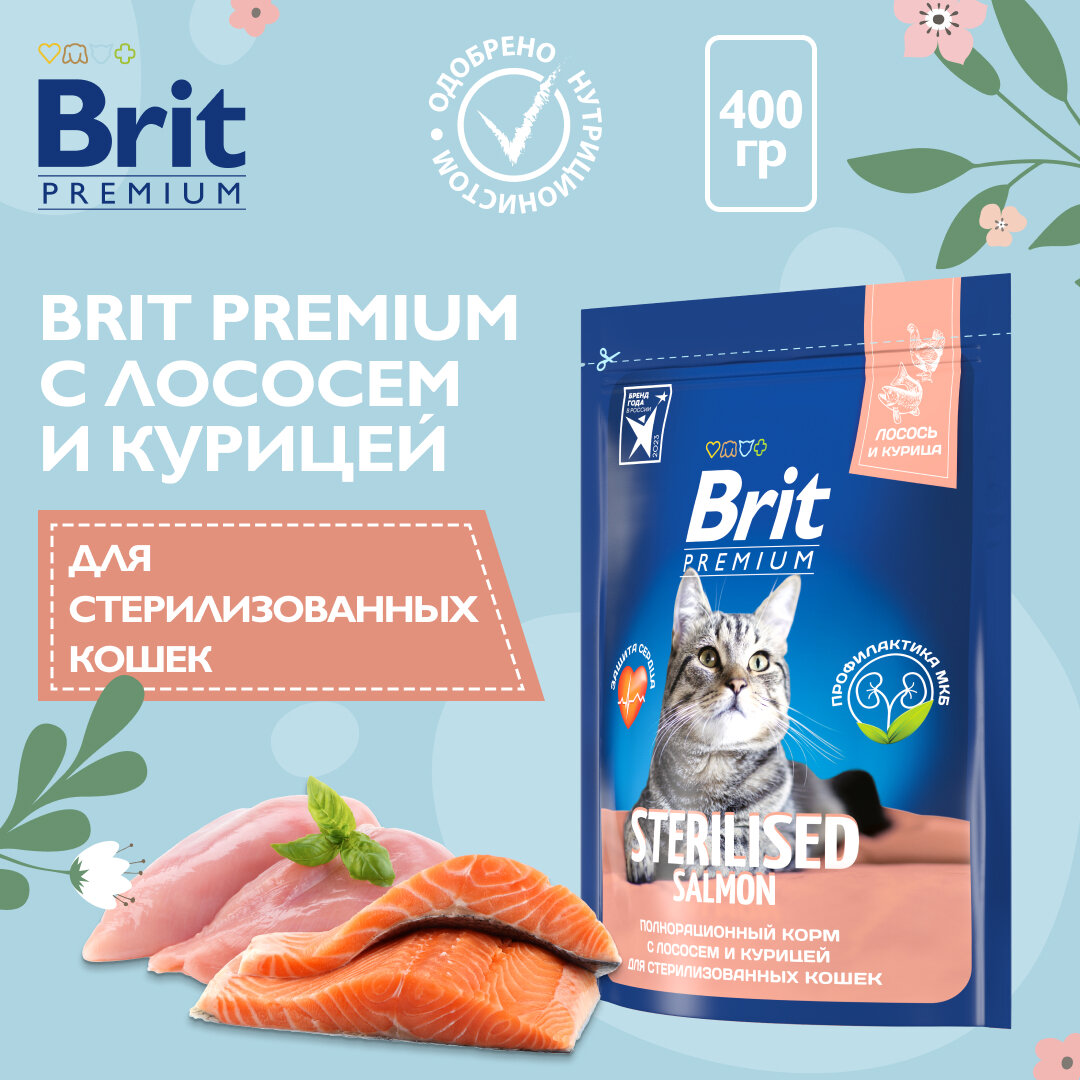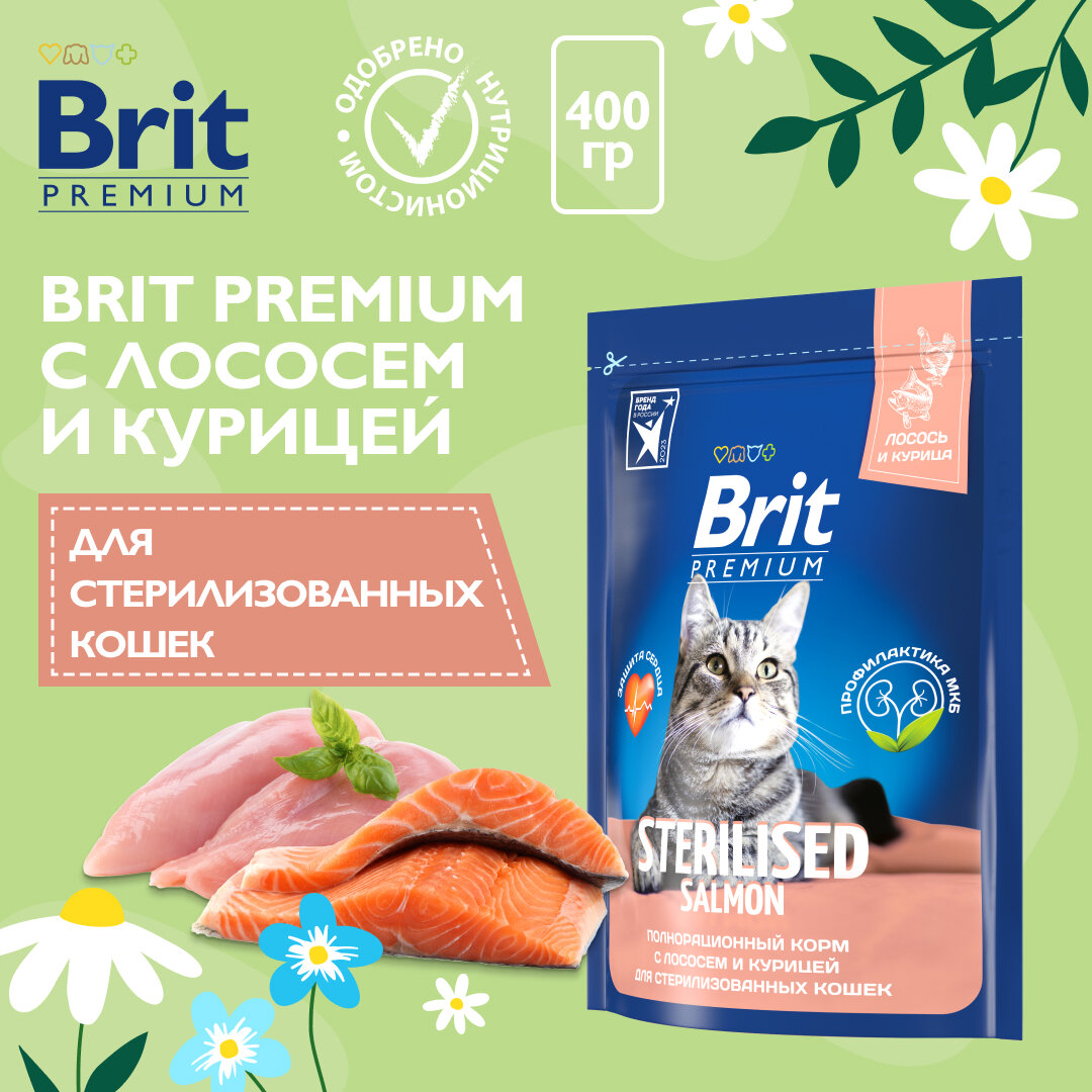 Сухой корм BRIT PREMIUM CAT STERILISED SALMON & CHICKEN для взрослых кастрированных котов и стерилизованных кошек с лососем и курицей (0,4 кг)