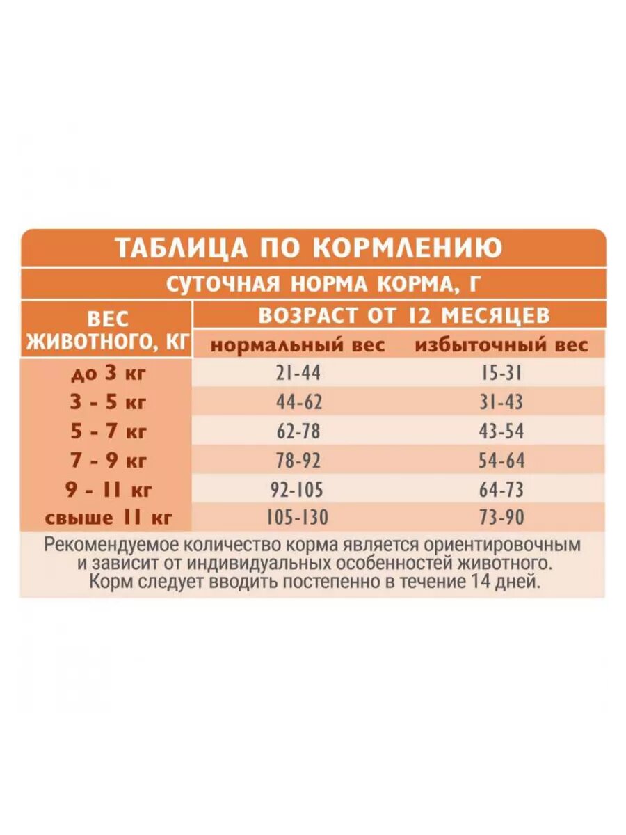 | Возраст животного | взрослые (1-6 лет) / пожилые (7+) |