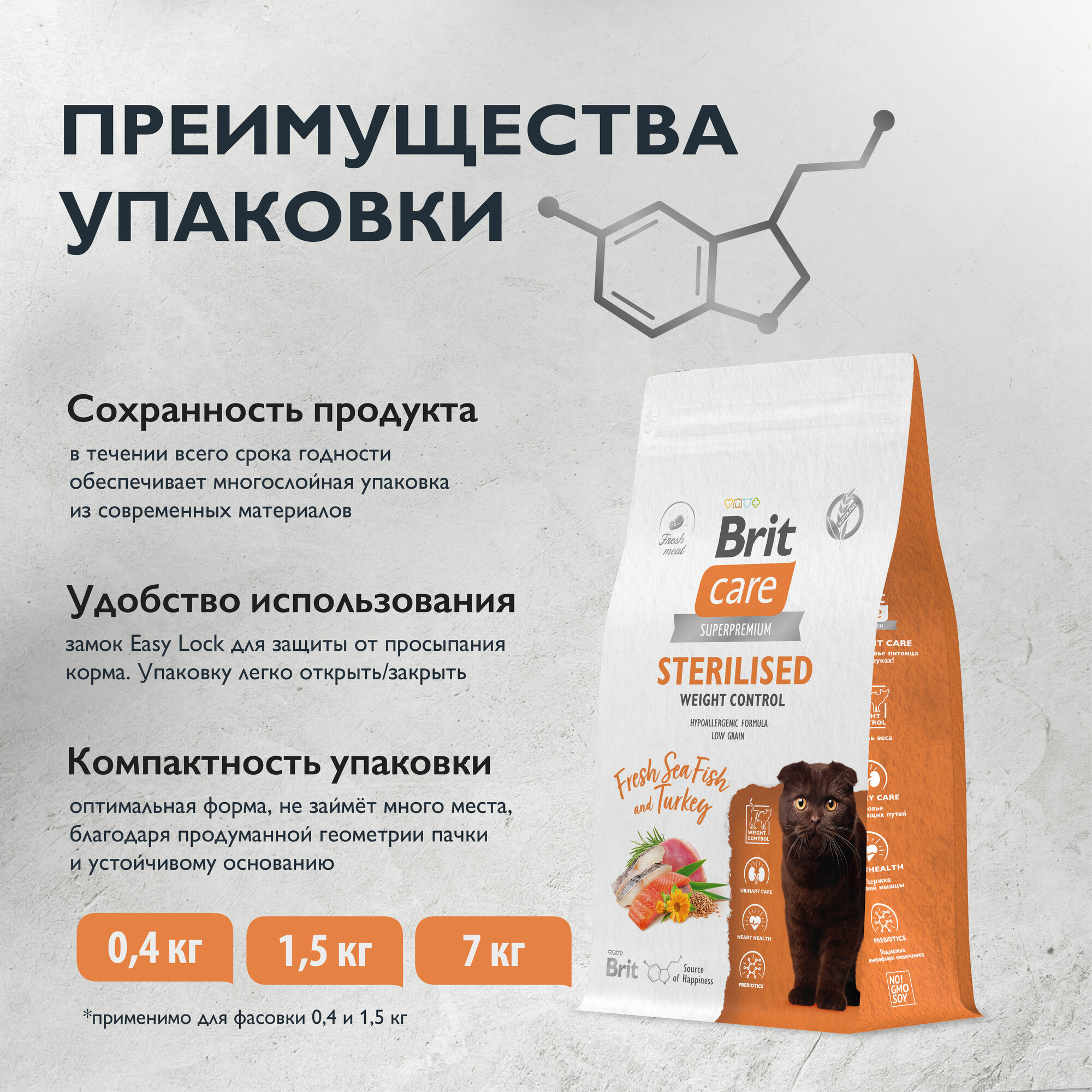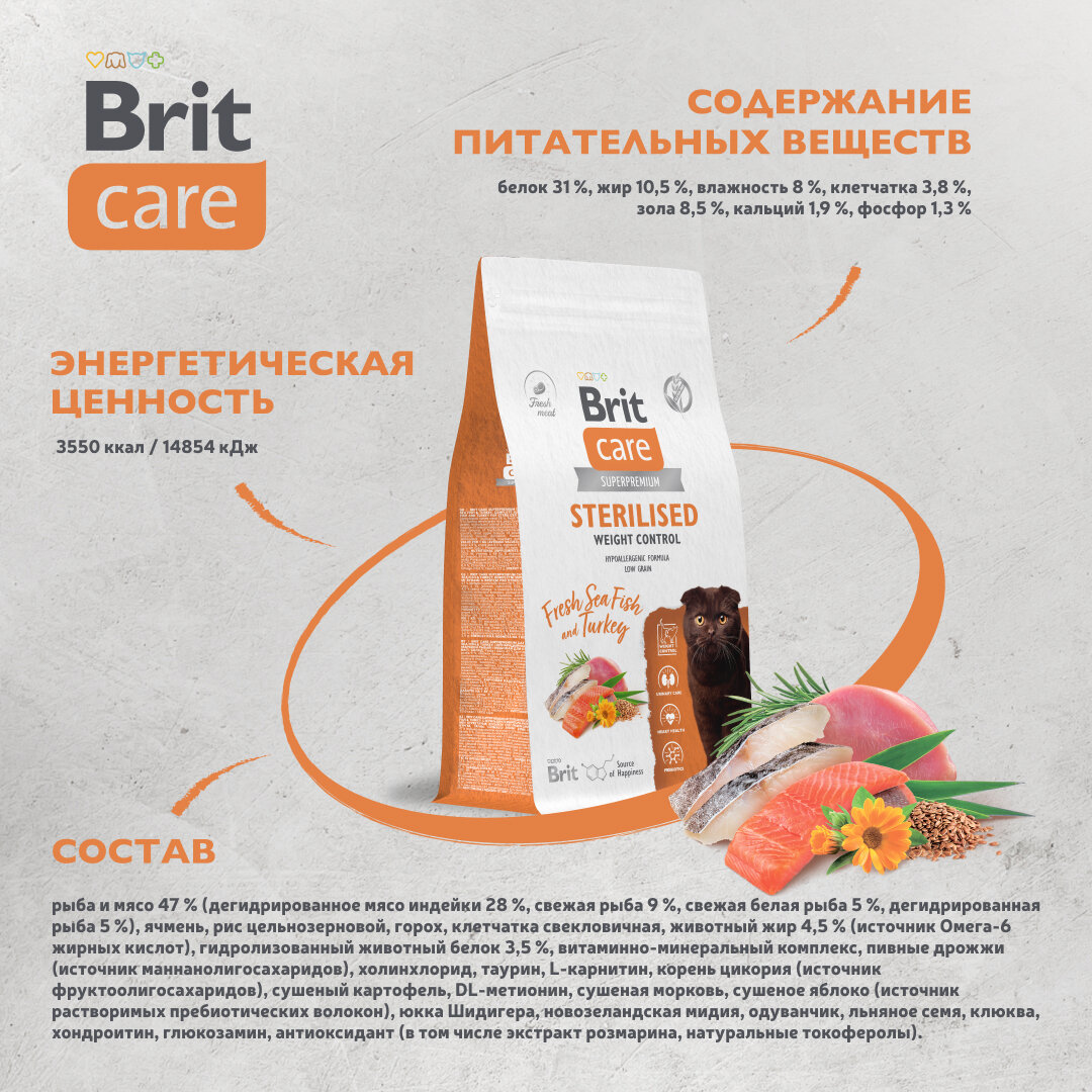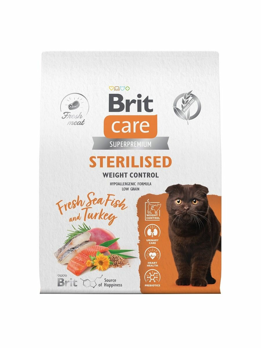 Brit Сухой корм Care Cat Sterilised Weight Control с морской рыбой и индейкой для стерилизованных кошек Контроль веса, 1,5кг 1.5 кг