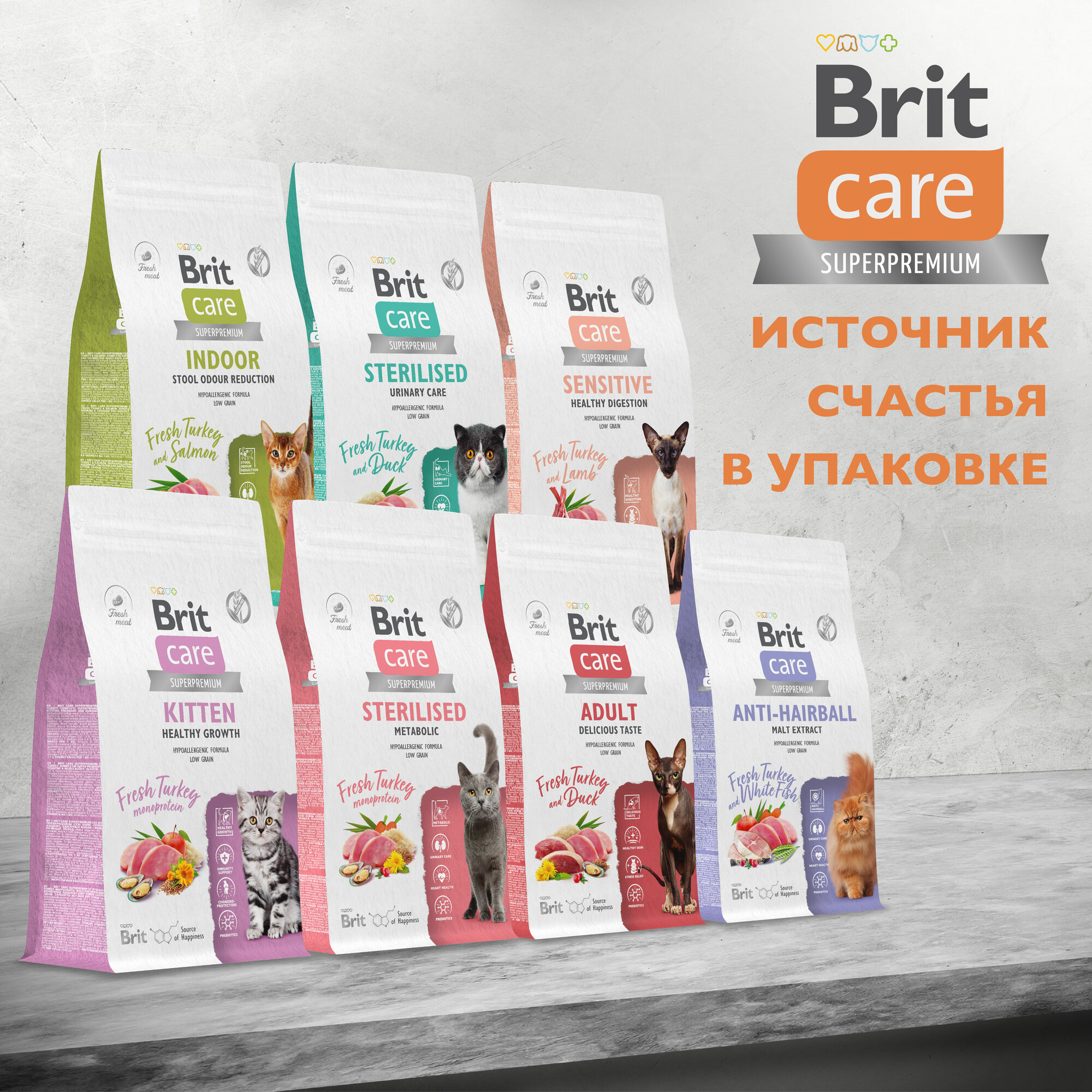 Сухой корм для кошек с индейкой и ягнёнком "Cat Sensitive Healthy Digestion", BRIT CARE 7 кг
