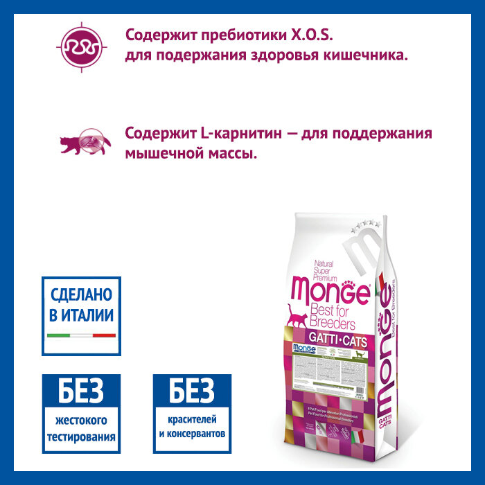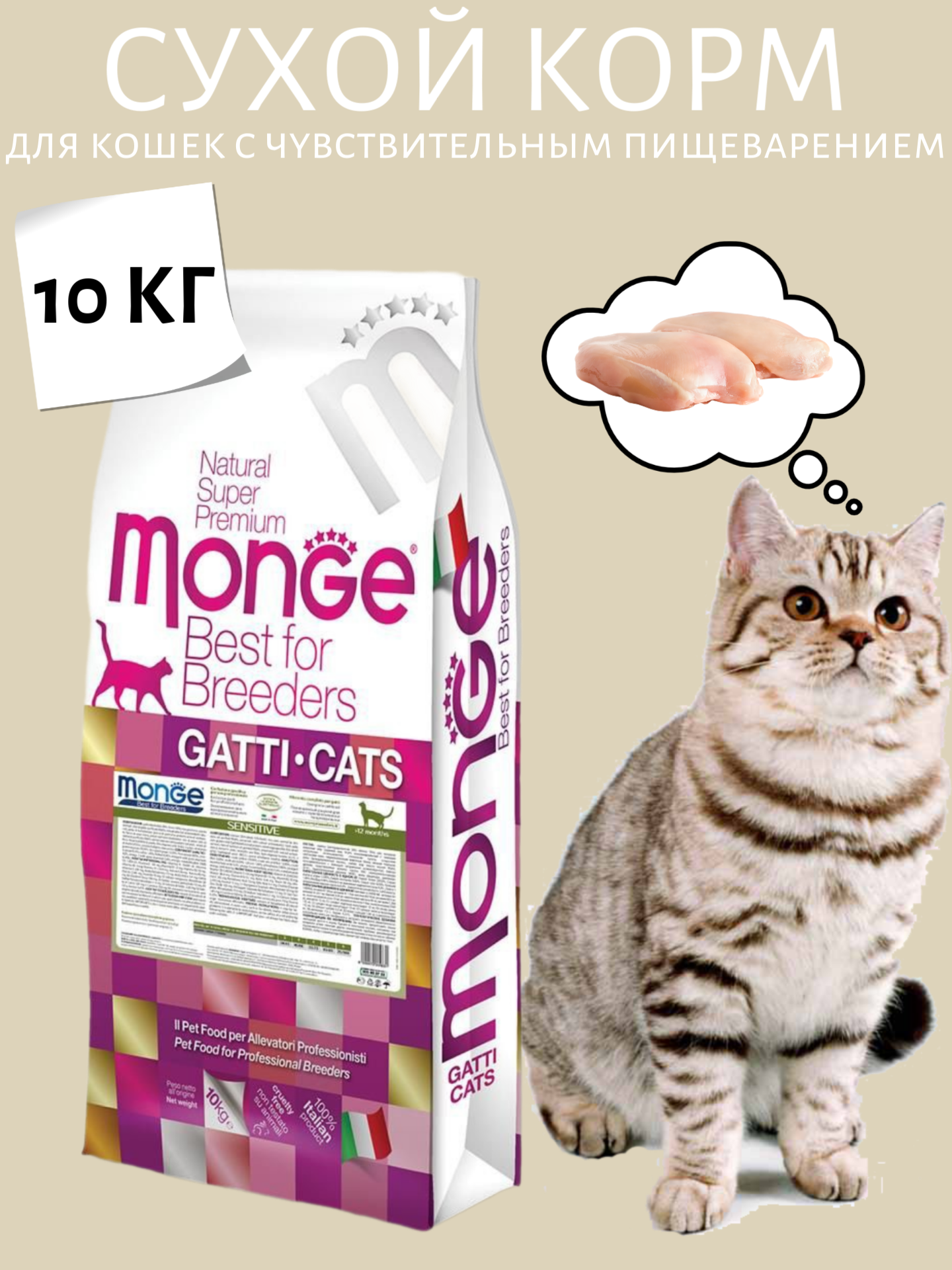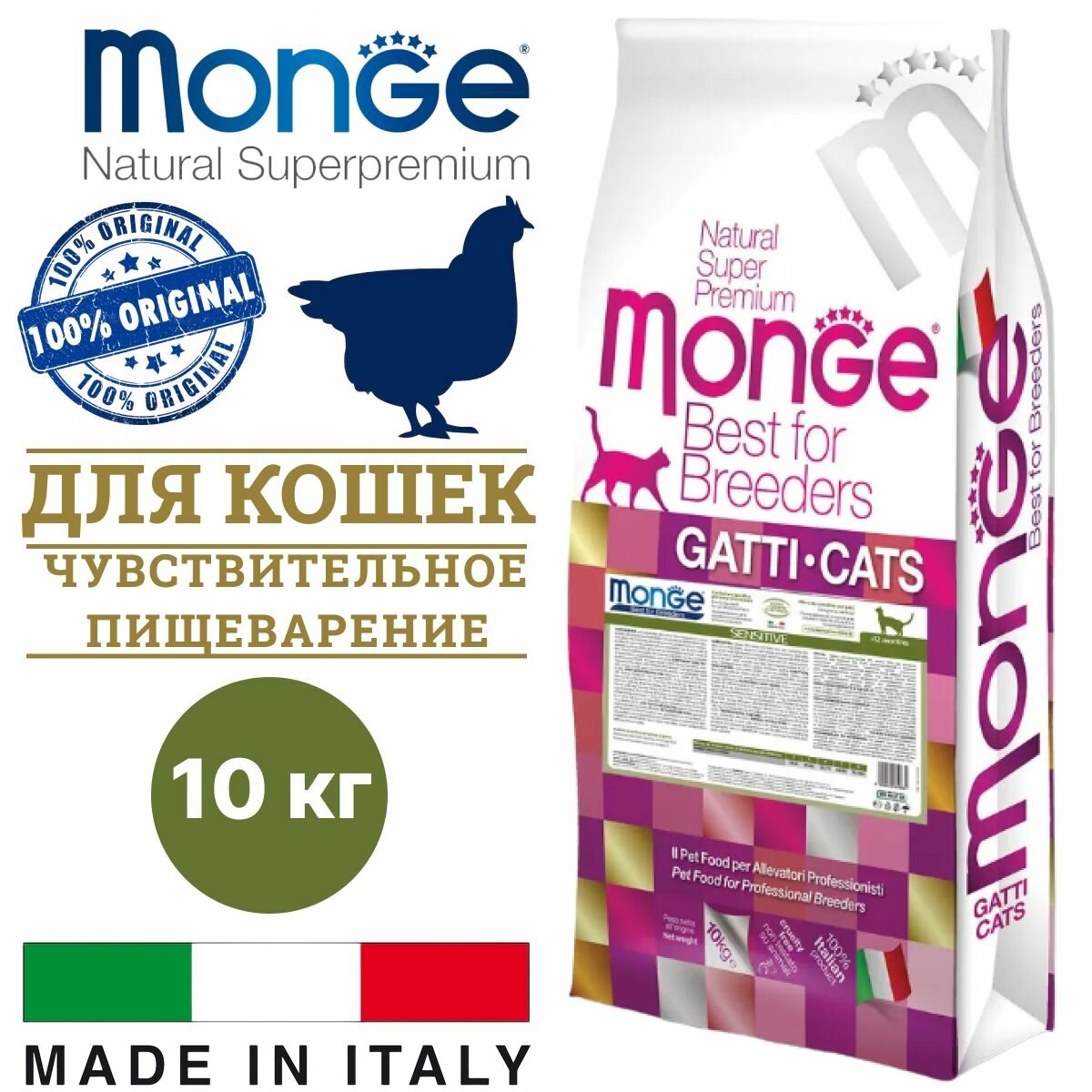 Сухой корм для кошек Monge Superpremium Cat, при чувствительном пищеварении 10 кг