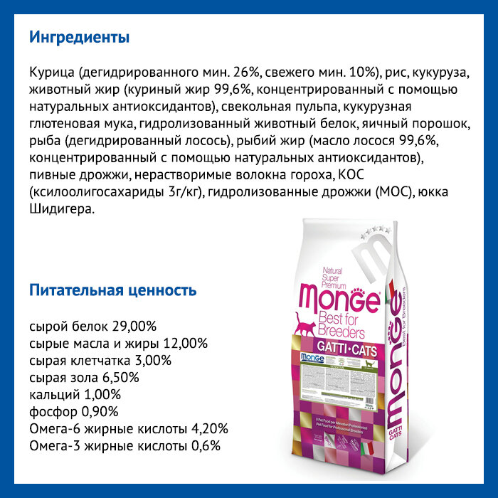 | Отзыв: | Отличный корм за свои деньги , отрекомендую к покупке. Кошки довольны, одну кошку кормлю этим кормом уже 7 лет, никаких проблем . Вторая кошка молодая (пол года ) тоже перевел на Монже. Сам не пробовал , но думаю кошкам очень нравится ? рекомендую |