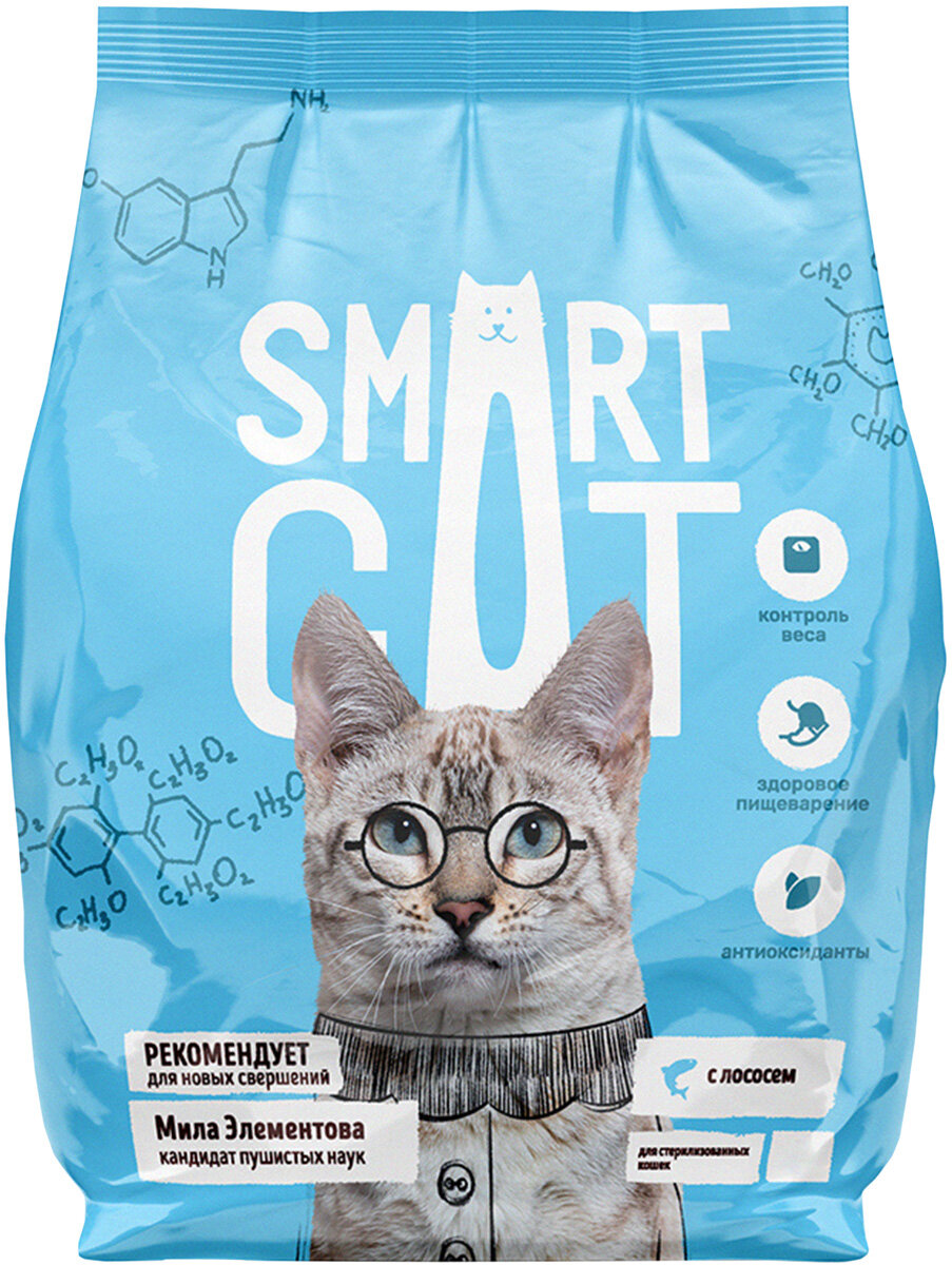Smart Cat сухой корм для взрослых стерилизованных кошек и кастрированных котов, с лососем - 0,4 кг